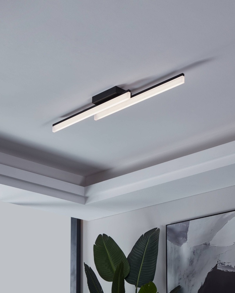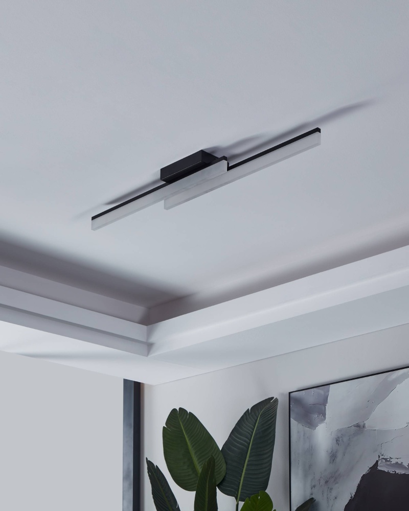 Integrated LED Ceiling Light with Black Finish & Satin Shade