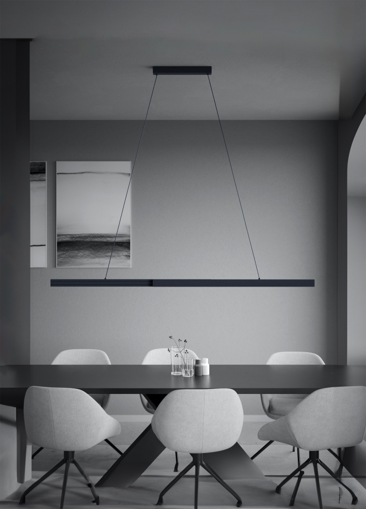 2 LT LED Linear Pendant w/ Black Finish & Black Shade & Acrylic Diffuser