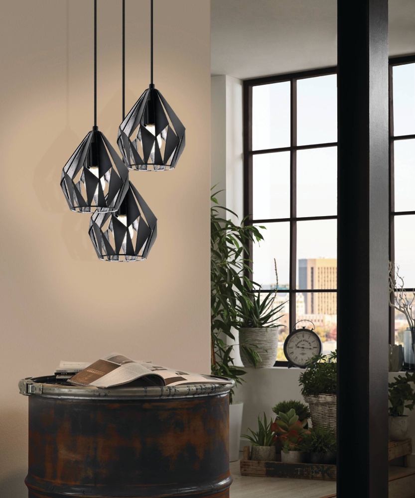 3 LT Cascade Pendant w/ Black Finish & Black & Silver Shades