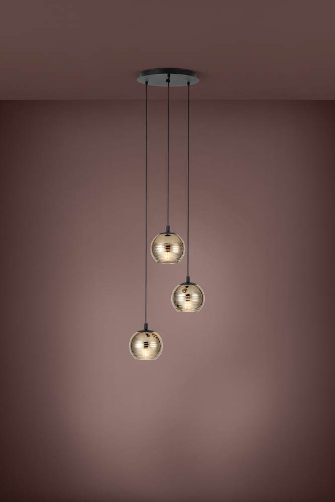 3 LT Round Cascade Pendant w/ Black Finish & Gold Smoked Glass Shades