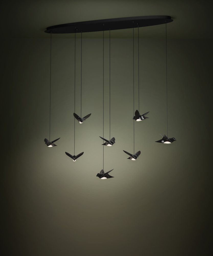 8 LT LED Oval Pendant w/ Black Finish & Birds w/ Black Chrome Finish
