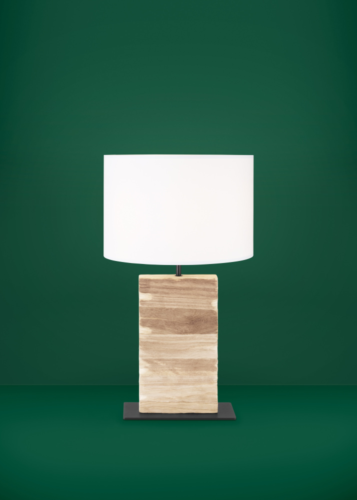 1 LT Table Lamp w/ a Natural Wood Body & White Fabric Shade