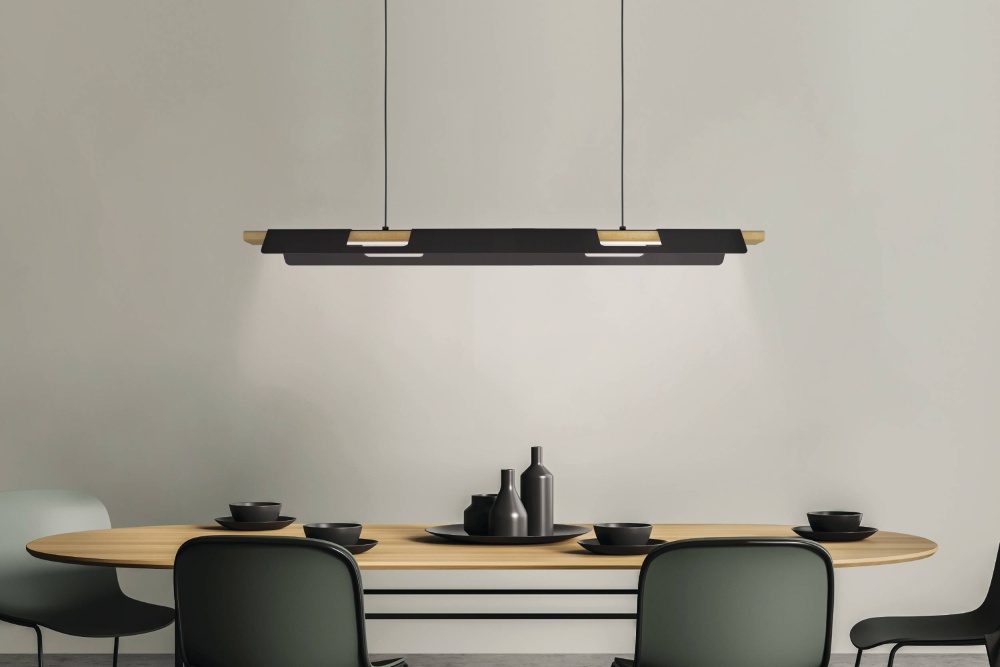 Integrated LED Linear Pendant w/ Black & Wood Finish