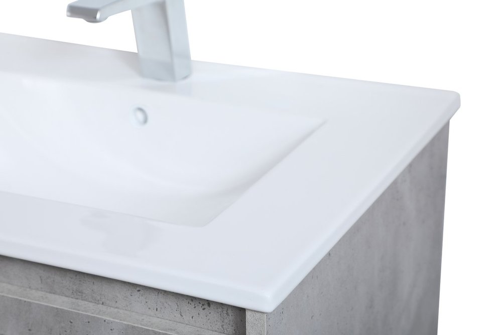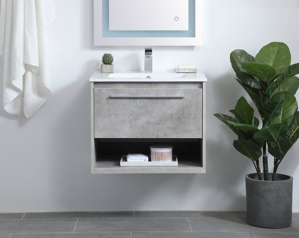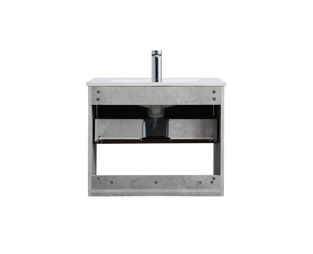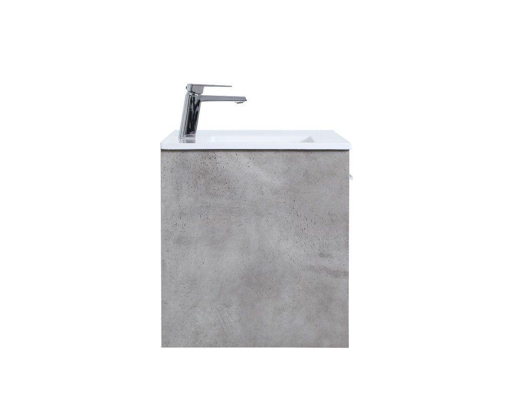 Save space and make your bathroom appear bigger with this 24" floating vanity in a concrete grey finish. Its minimal design will have you in awe, while its clean lines will leave your room feeling fresh and uncluttered. The Single u-drawer pulls out for storage while the open space below allows you to place extra towels or various other essentials.