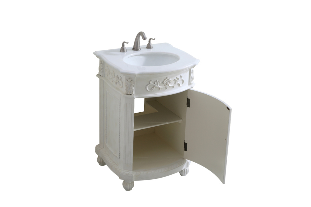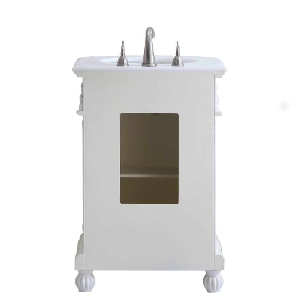 24 inch Single Bathroom vanity in Antique White with ivory white engineered marble