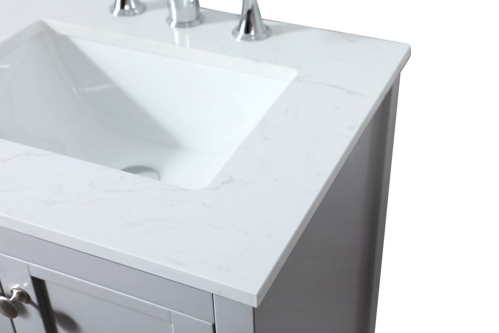 Comes with an undermount porcelain sink and a durable calacatta engineered marble stone top