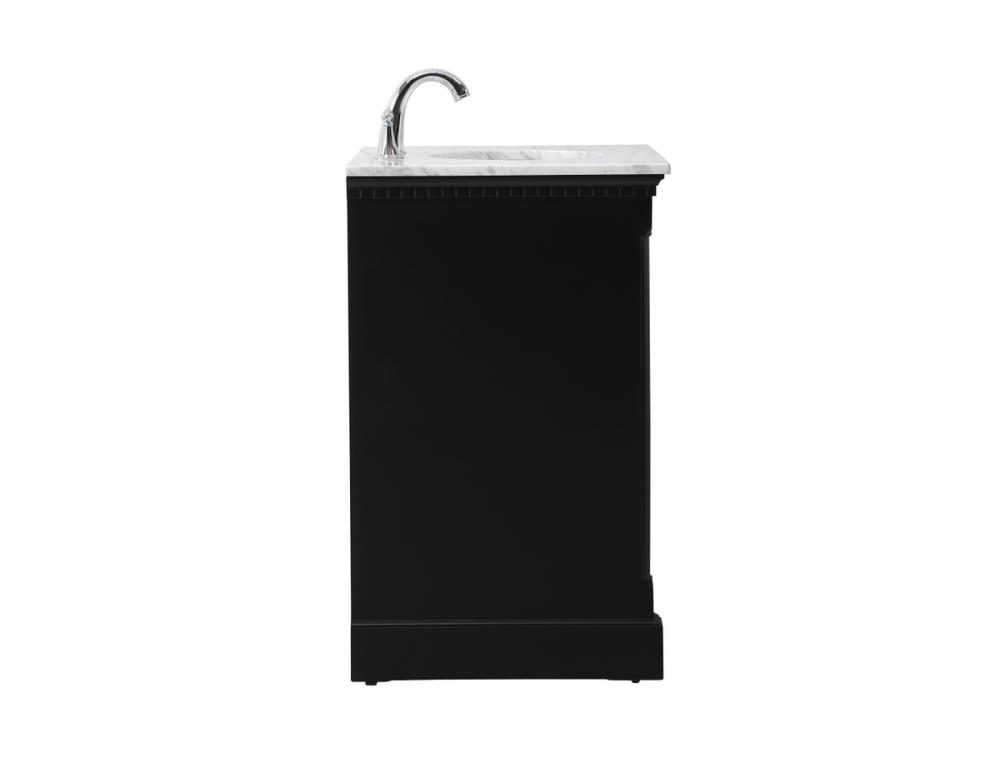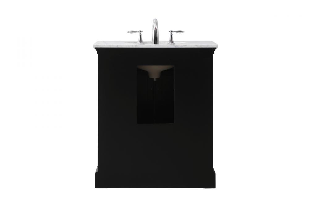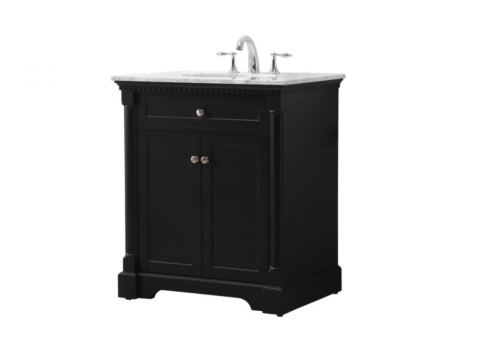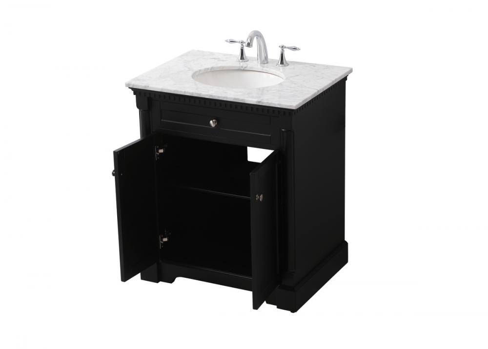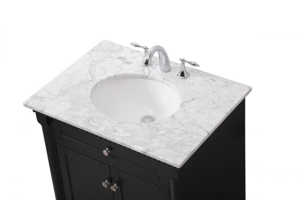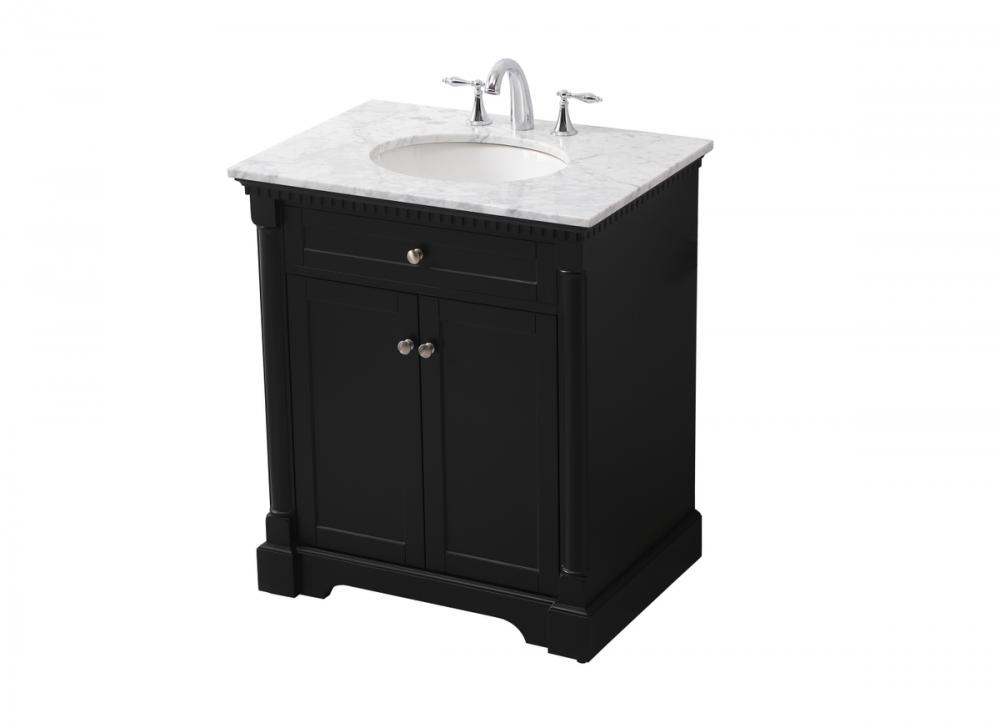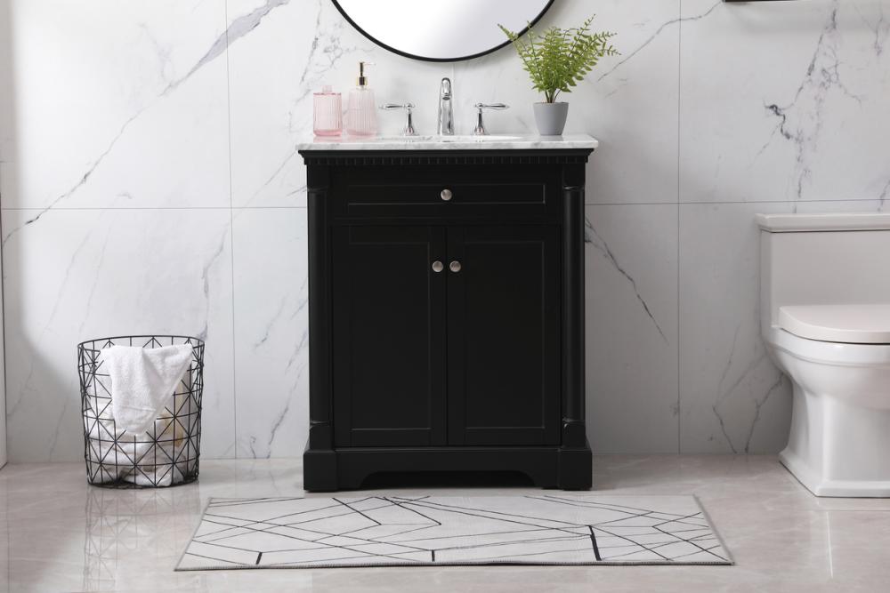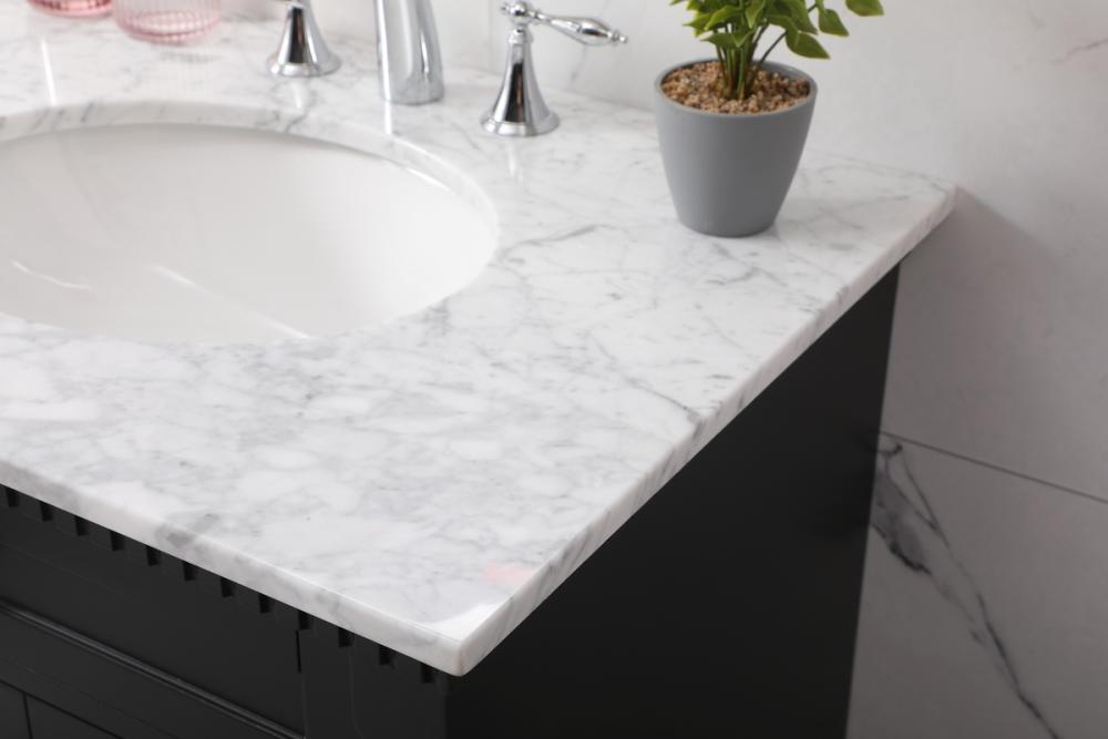 Make the most of your space with this traditional style bathroom vanity. Its traditional style is able to complement many aesthetics, natural marble countertop, and the round brushed nickel knobs that sits above the soft closing doors, allowing you to store an assortment of bathroom essentials. The lower shelf makes it the perfect space to hold new towels for your guests. This compact vanity ensures both form and function in your bathroom or powder room for you and your guests.