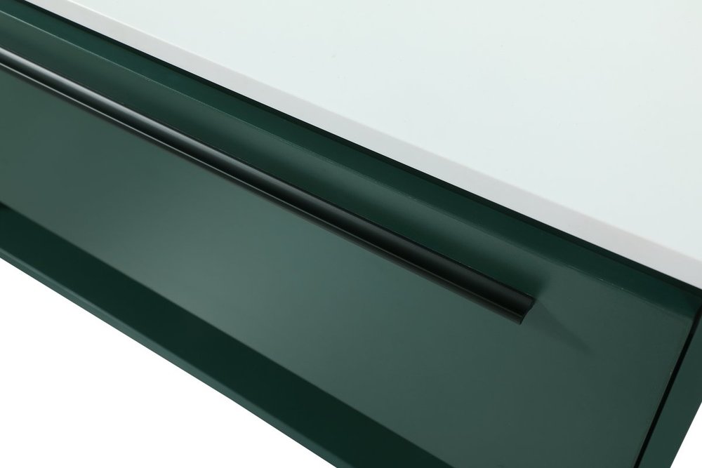 Save space and make your bathroom appear bigger with this floating vanity. Its minimal design will have you in awe, while its clean lines will leave your room feeling fresh and uncluttered. The Single u-drawer pulls out for storage while the open space below allows you to place extra towels or various other essentials. The ivory white engineered marble counter top with porcelain sink adds refined luxe while the aluminum barpull style handle adorn the vanity face.