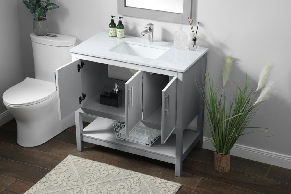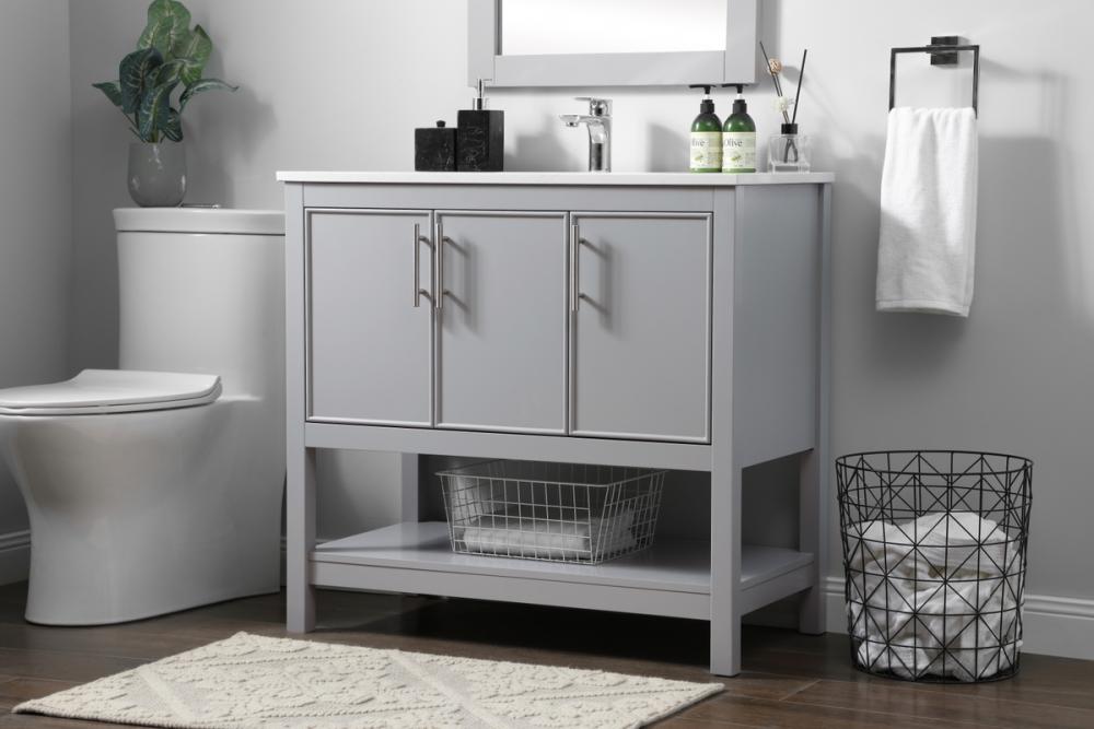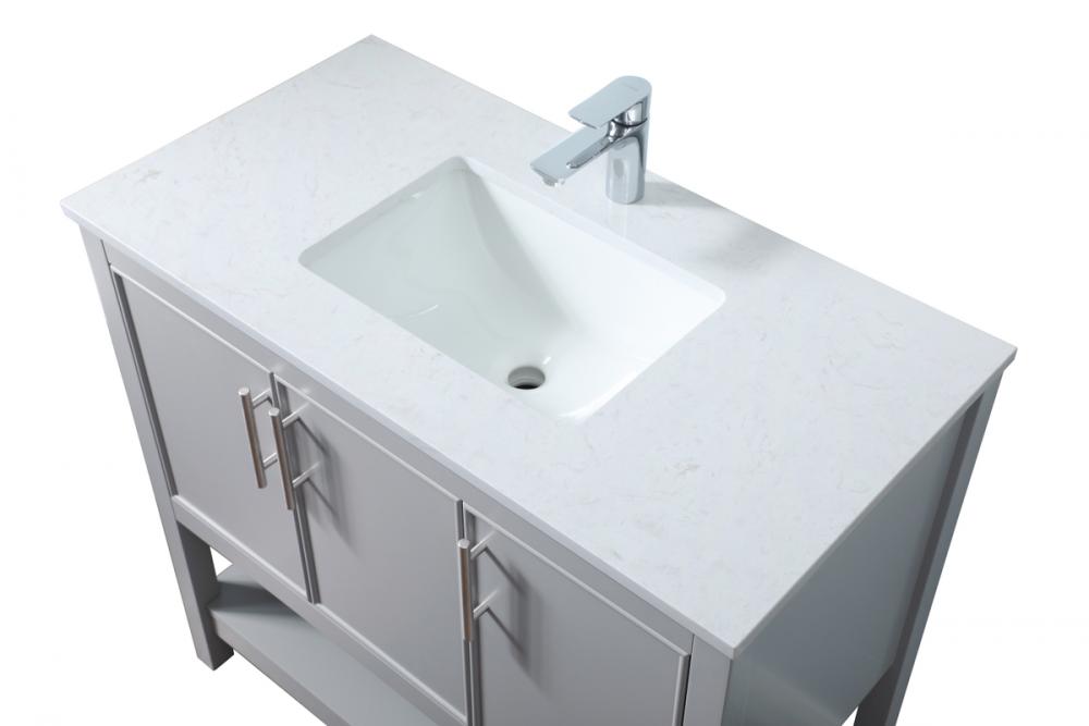 Experience the epitome of modern elegance with our meticulously crafted 36-inch vanity. Boasting a chic straight edge cut and an engineered marble top, this design features two functional cabinets with two soft-close doors, ensuring seamless and stylish access to ample storage. The vanity is complemented by a sophisticated undermount porcelain sink, merging style with practicality for an elevated bathroom experience. Adorned with sleek pulls and featuring a lower open shelf, it seamlessly combines contemporary aesthetics with functional design. Additionally, the single pre-drilled hole allows for easy faucet personalization, adding a final touch of elegance to your unique bathroom. Redefine your space with this versatile and stylish addition.