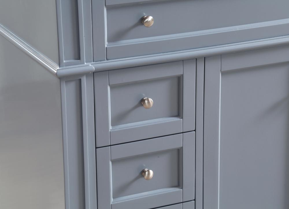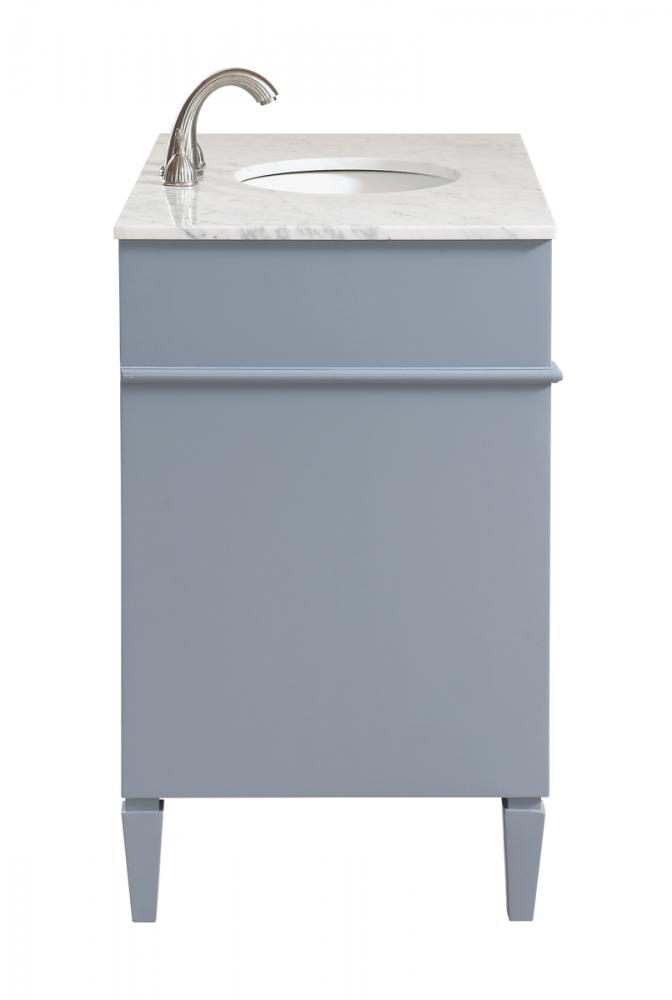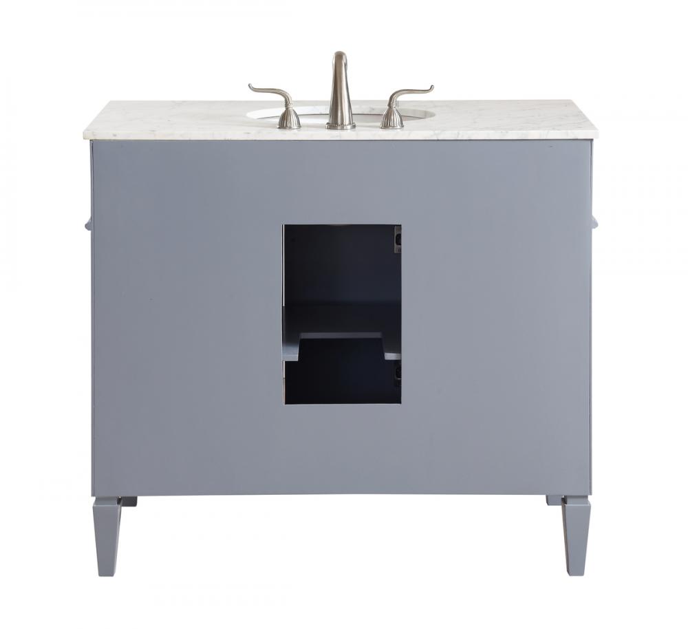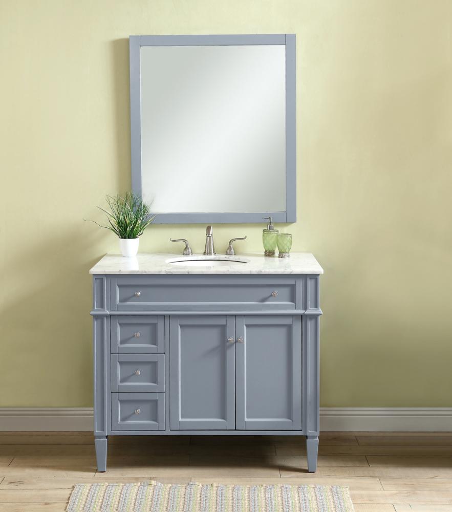 This classic, contemporary marble top vanity console from our “Park Avenue” collection is roomy enough to keep all your bath essentials close at hand. Fitted with a spacious Italian Carrara white marble counter top and an oval porcelain sink, you will naturally enhance your home or office bathroom with both its beauty and practicality. Featuring a hand painted grey cabinet, 3 deep drawers and a set of recessed door with shelf inside, brushed steel knob and tapered leg. measurements: W40”xD21.5”Xh35”