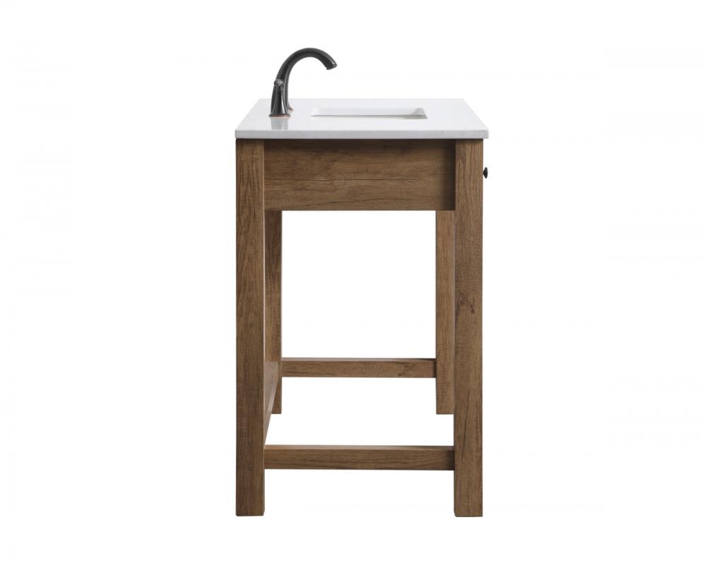 Step into a world of accessibility and sophistication with our Handicap ADA Compliant Bathroom Vanity. Carefully crafted to meet ADA standards, this exceptional piece goes beyond functionality to redefine inclusivity in your bathroom space. The ADA compliant sink cabinet opens doors to unparalleled wheelchair access, ensuring that everyone can navigate their daily routines with ease. The undermount porcelain sink, coupled with a durable Calacatta look engineered marble stone top, adds a touch of timeless luxury to your bathroom while standing up to the demands of everyday use. Versatility meets personalization with predrilled countertops featuring three holes, ready to accommodate a variety of faucets (faucets not included). The thoughtful design extends to the soft closing glides on the drawers, creating a serene and noise-free environment in your bathroom sanctuary.Say goodbye to the complexities of assembly – our vanity ships fully assembled and ready to use, offering you convenience from the moment it arrives. The generous 27-inch knee clearance from the floor ensures optimal comfort and accessibility, catering to the unique needs of individuals using wheelchairs. Every detail has been considered, including a discreetly placed overflow hole in the porcelain sink. This thoughtful touch not only enhances the aesthetic appeal but also adds a practical element, ensuring a seamless and worry-free experience.Elevate your bathroom to new heights with our Handicap ADA Compliant Bathroom Vanity, where accessibility meets elegance, and every feature is designed to enhance your daily rituals. Redefine your space with a commitment to inclusivity without compromising on style.