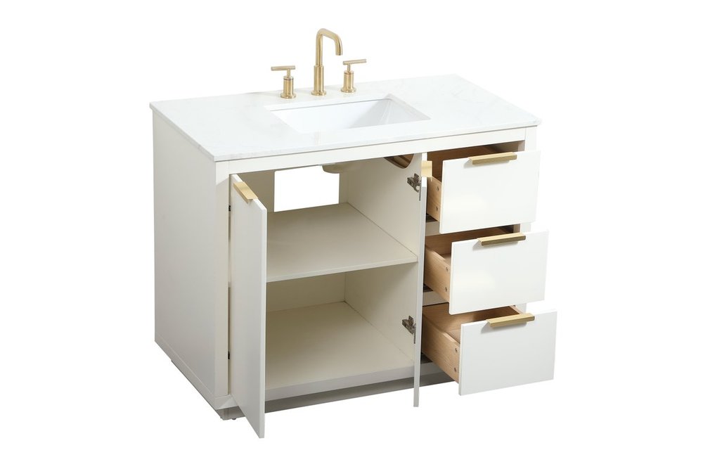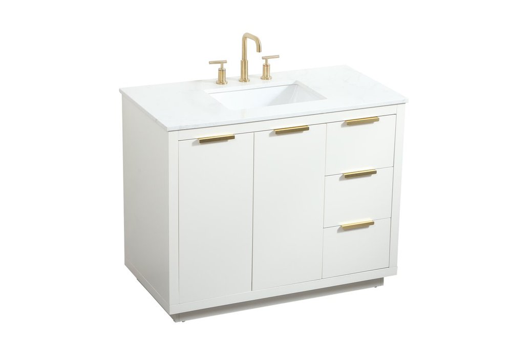 The Blake collection vanity cabinet will be a modern furniture statement piece in your bathroom. Our color combination creates a calming atmosphere in the room. The gold handles bring a vibrant touch to balance the vanity. With the simplistic clean lines, the cabinet catches eyes with its beautiful smooth surface. Open the cabinet doors to store what you desire and make use of the spacious area. Gently close the door and the soft closing glides will quietly closes the door. To top it off, the calacatta engineered marble adds a luxury and modern finish to the durable stonetop.