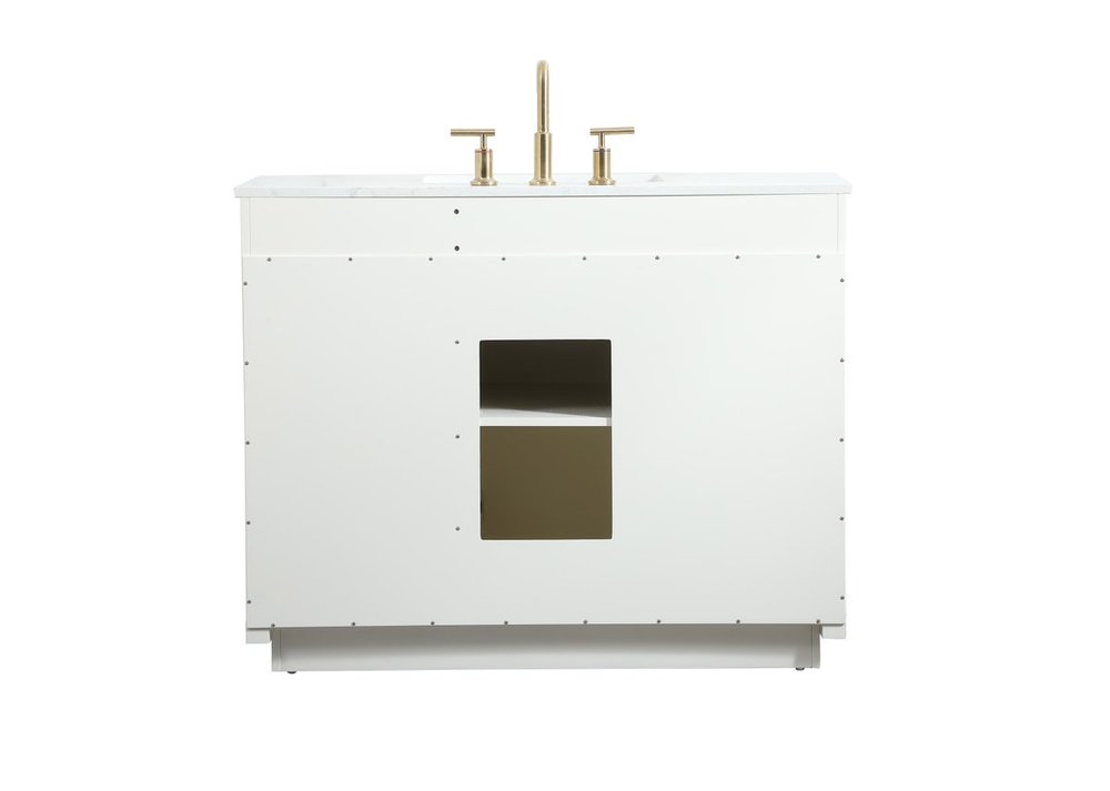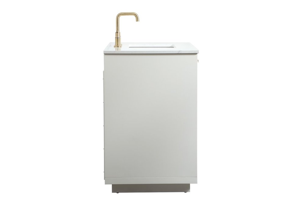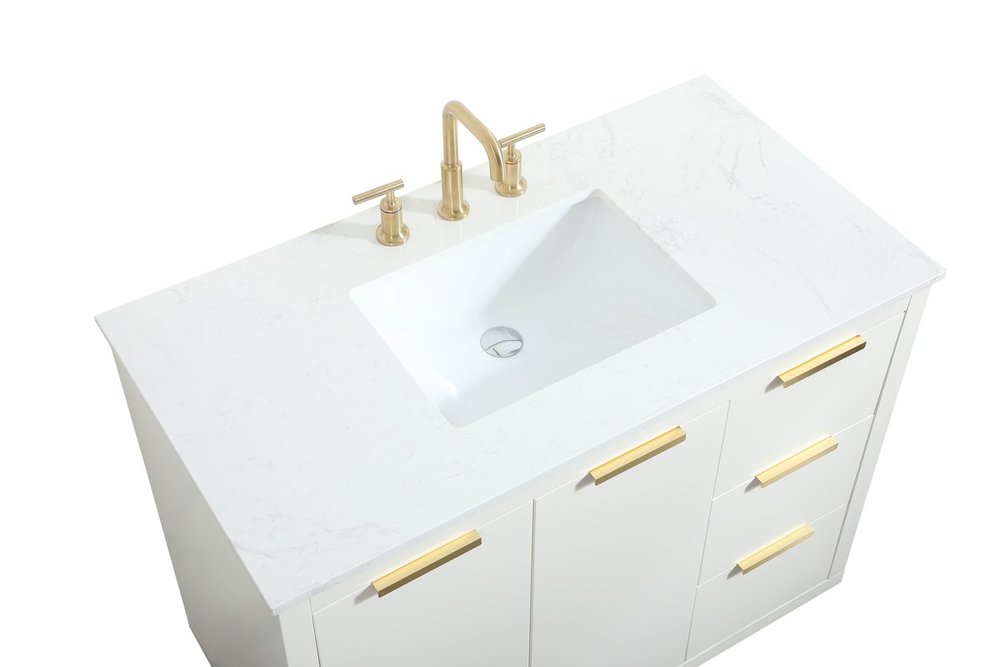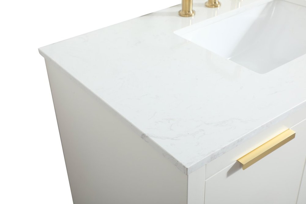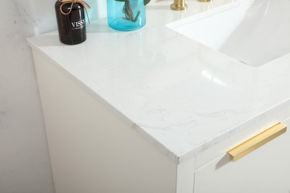 Comes with an undermount porcelain sink and a durable calacatta engineered marble stone top