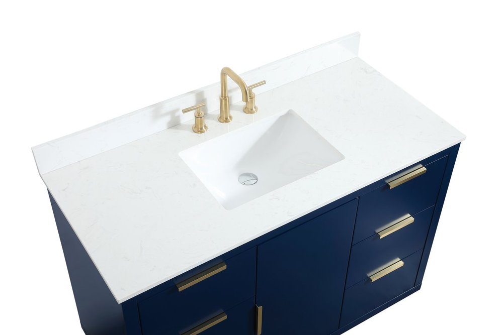 Comes with an undermount porcelain sink and a durable calacatta engineered marble stone top