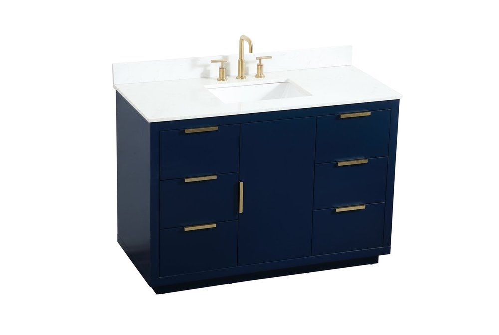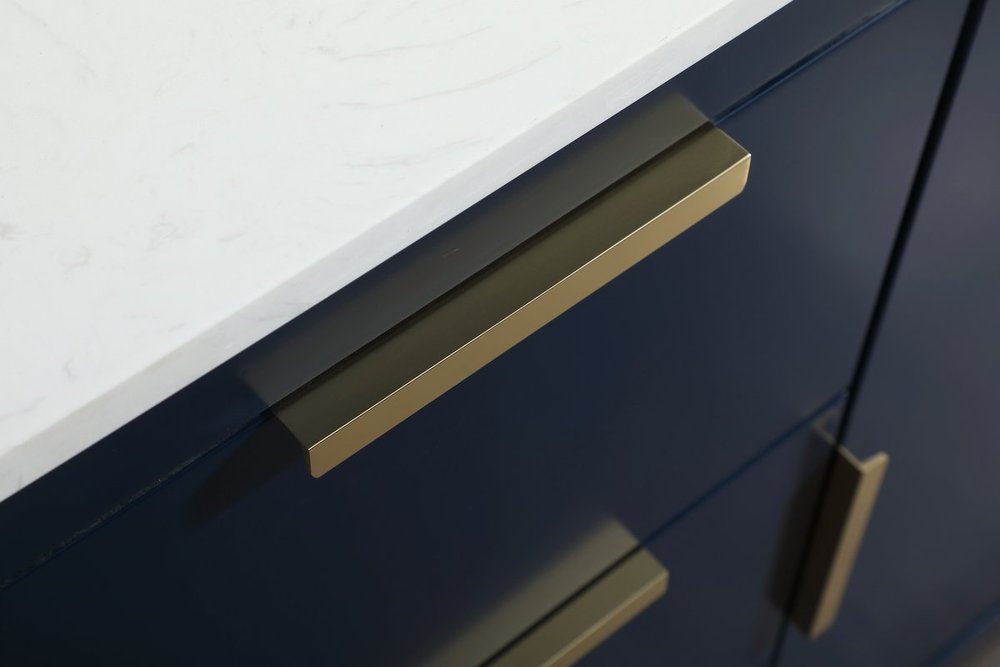 The Blake collection vanity cabinet will be a modern furniture statement piece in your bathroom. Our color combination creates a calming atmosphere in the room. The gold handles bring a vibrant touch to balance the vanity. With the simplistic clean lines, the cabinet catches eyes with its beautiful smooth surface. Open the cabinet doors to store what you desire and make use of the spacious area. Gently close the door and the soft closing glides will quietly closes the door. To top it off, the calacatta engineered marble adds a luxury and modern finish to the durable stonetop.