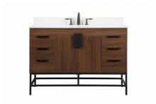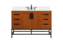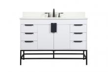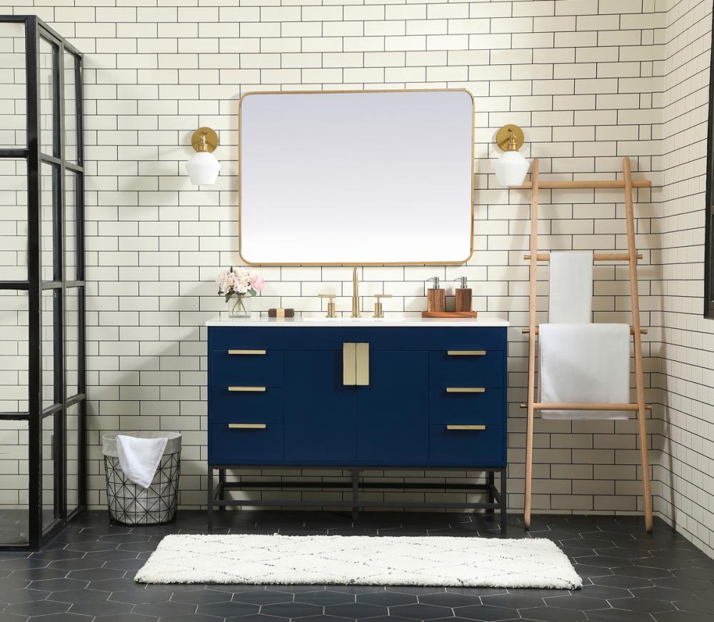 This vanity is a sleek-looking piece of bathroom furniture that is easy to incorporate into your design scheme. The cabinet features a smooth door panel with an oversized steel handle and soft close hinges provide ample room for accessories. Packed with multiple side drawers with soft close glides for added comfort and full access to bath supplies. Constructed of engineered wood, the powder-coated metal rod legs are an urban industrial look that we love. Minor assembly of the metal legs needed to get this vanity up and running.