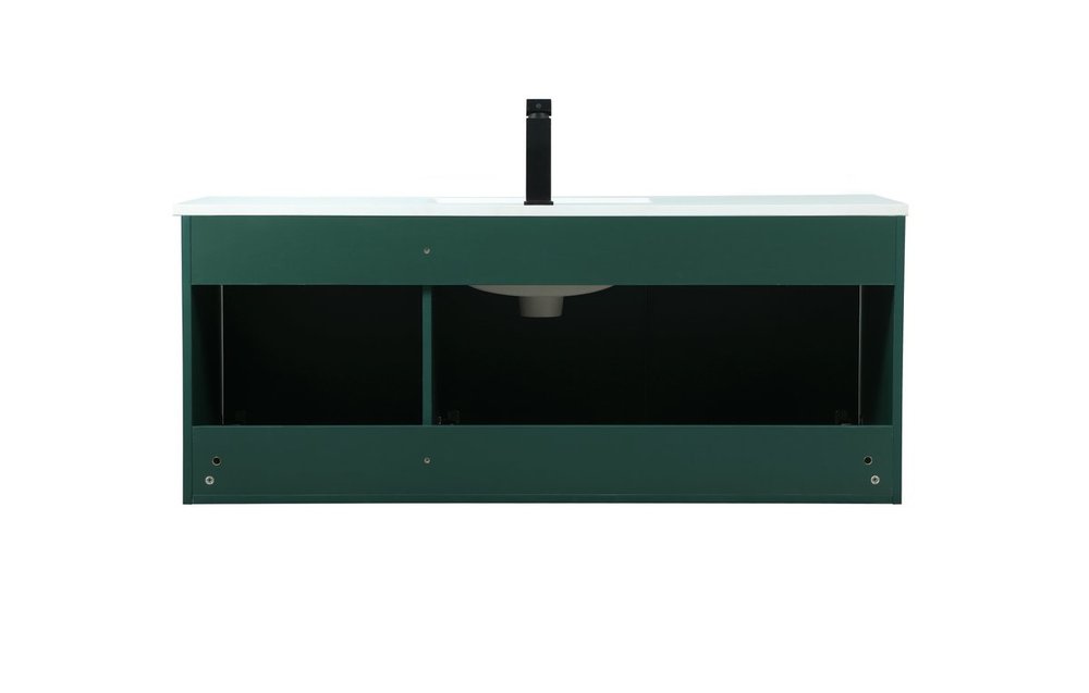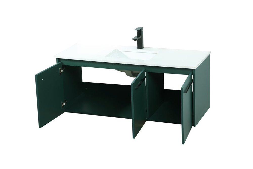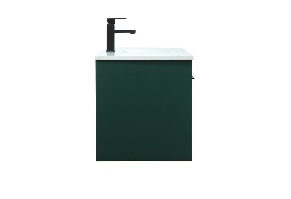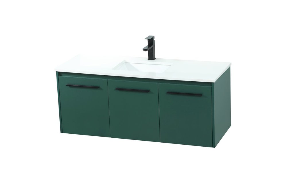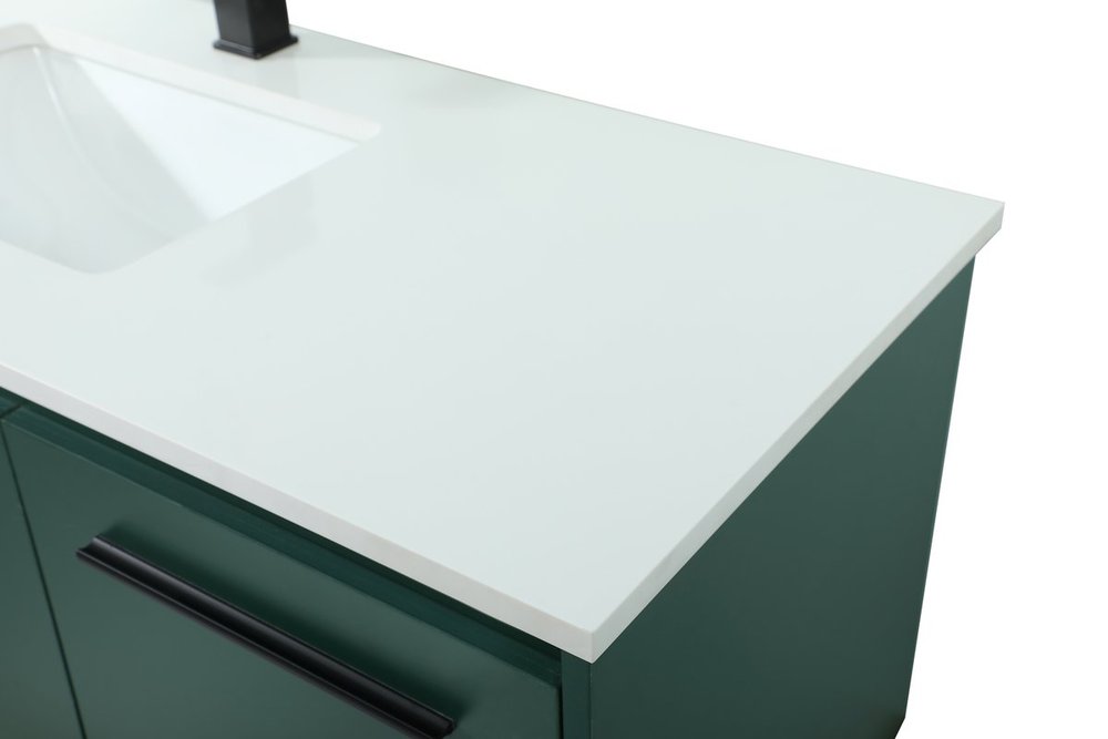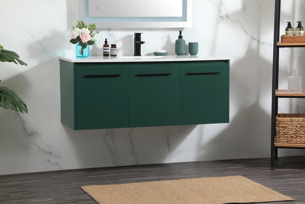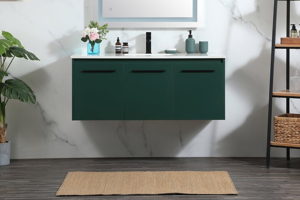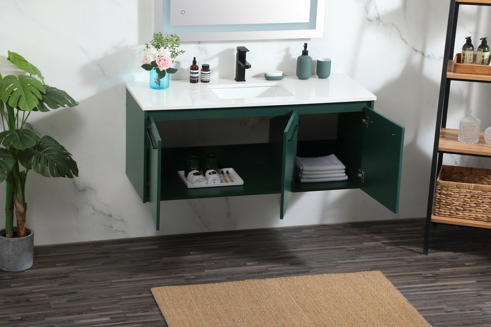 Save space and make your bathroom appear bigger with this floating vanity that comes in several finishes. Its minimal design will have you in awe, while its clean lines will leave your room feeling fresh and uncluttered. The Single cabinet opens with soft closing doors that allows for storage to place extra towels or various other essentials. Its low maintenance and durable engineered marble top will surely last through many washes.