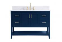 The nonchalant attitude of this 42" traditional grey finish vanity will have you wanting more. The slender brushed nickel handle bars open the center double cabinet and two side cabinet doors to reveal ample storage space to put away and store bathroom essentials, and the open space below allows for you to place clean towels on the rack. Topped with a Calacatta engineered marble countertop, you and your guests will enjoy this easy going vanity.