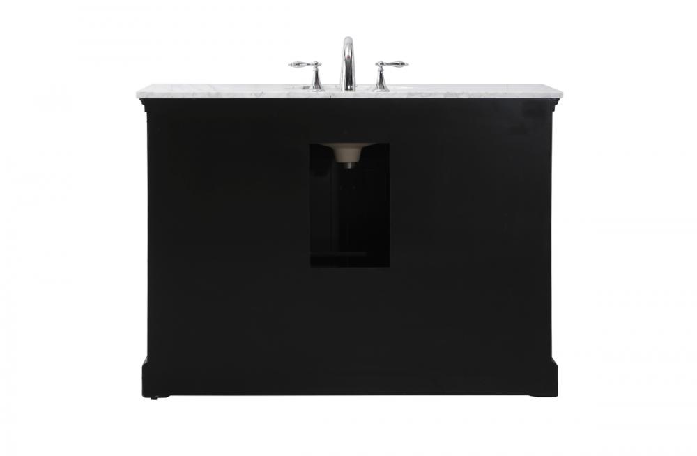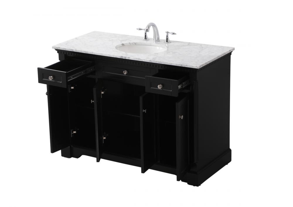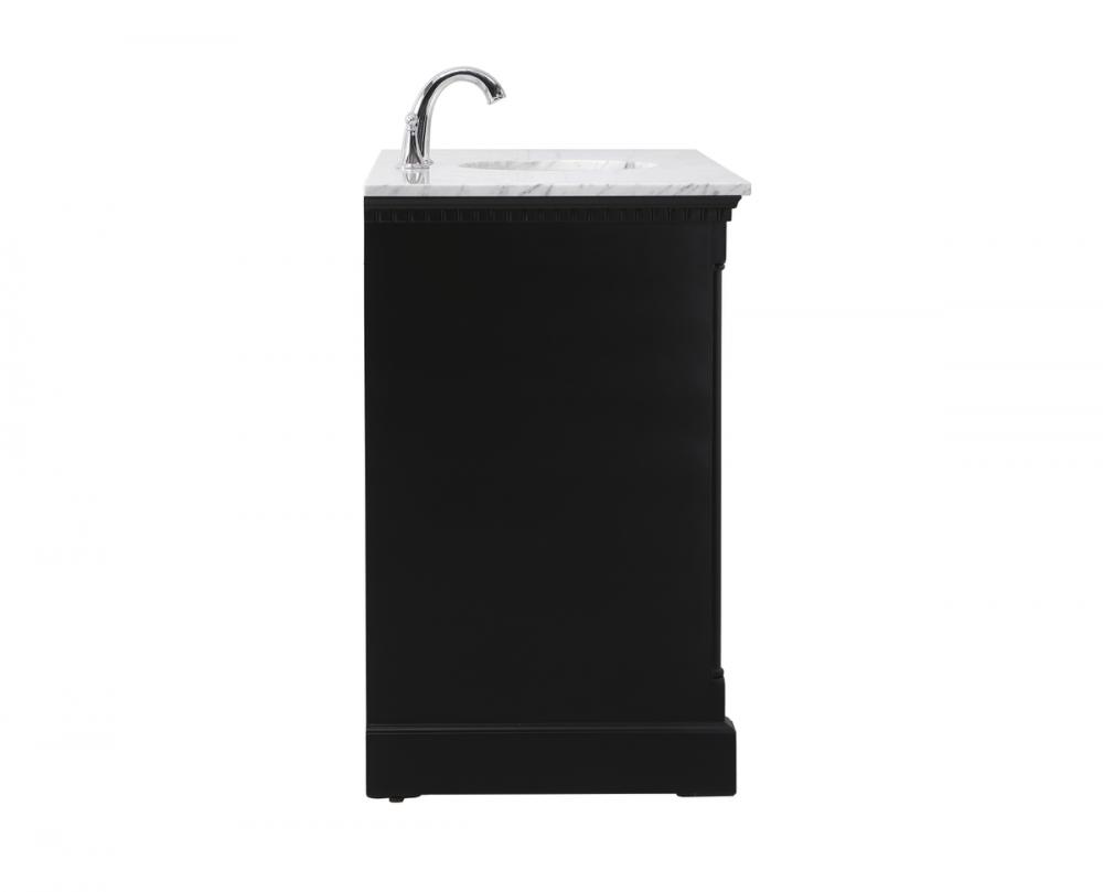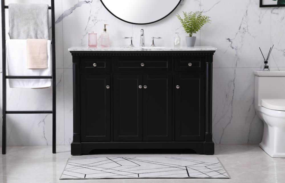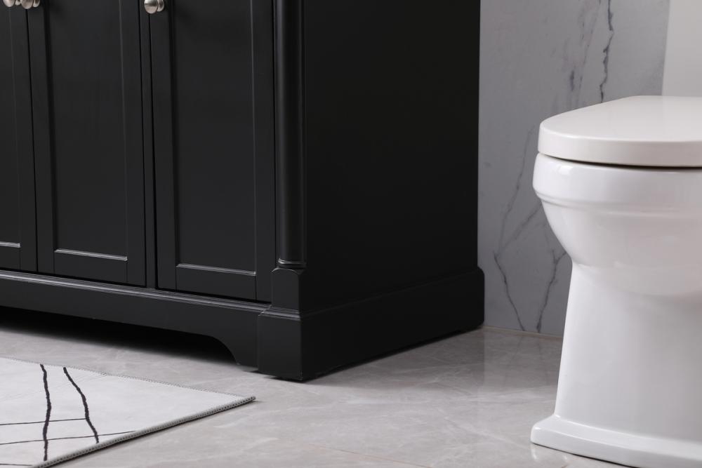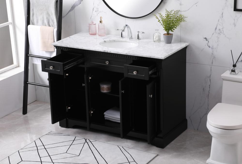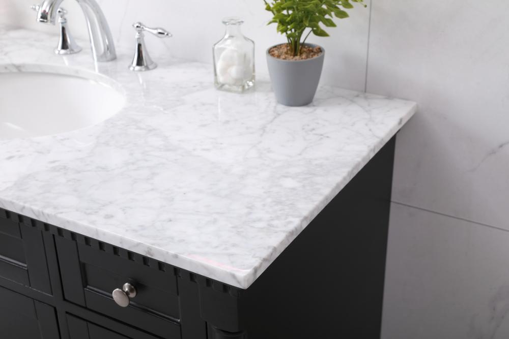 Make the most of your space with this traditional style bathroom vanity. Its traditional style is able to complement many aesthetics, natural marble countertop, and the round brushed nickel knobs that sits above the soft closing doors, allowing you to store an assortment of bathroom essentials. The lower shelf makes it the perfect space to hold new towels for your guests. This compact vanity ensures both form and function in your bathroom or powder room for you and your guests.