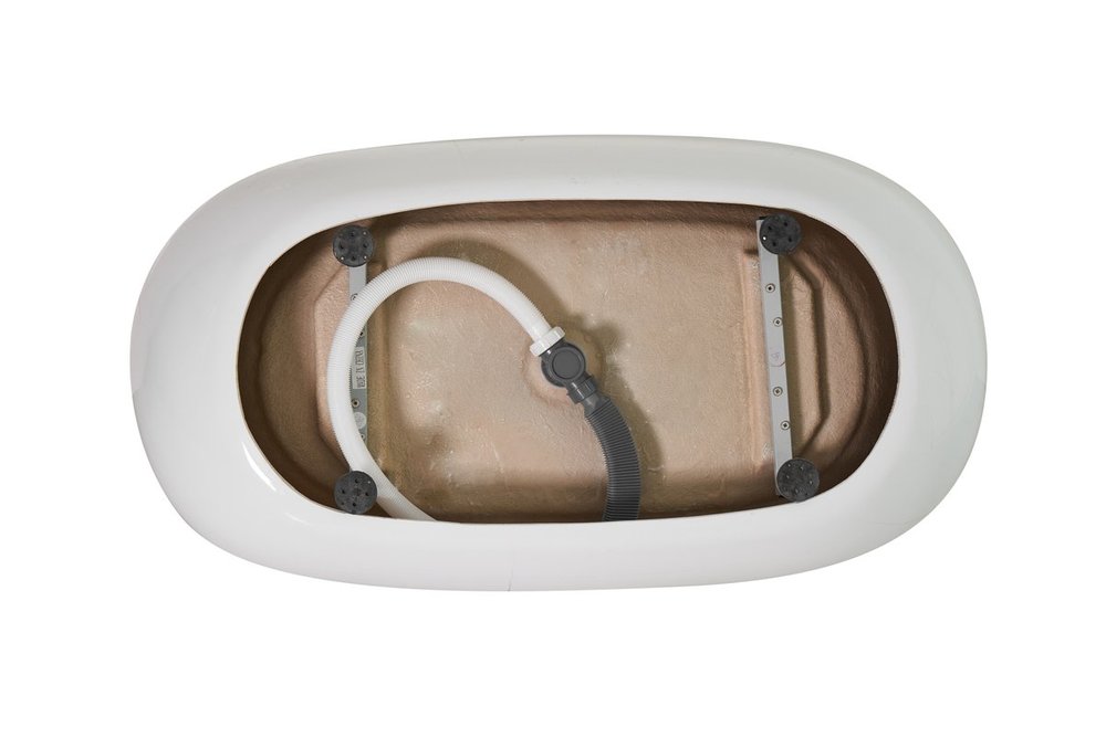 Adjustable leveling feet are included to stabilize the tub on any surface