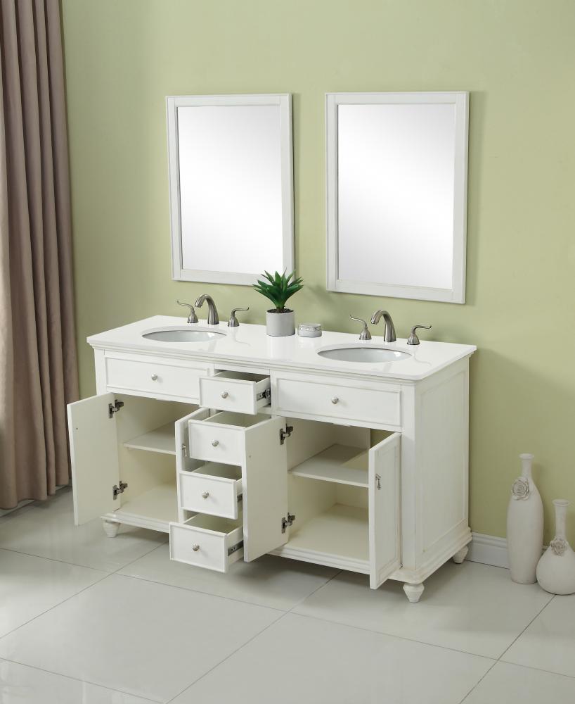 60 inch Double Bathroom vanity in Antique White with ivory white engineered marble