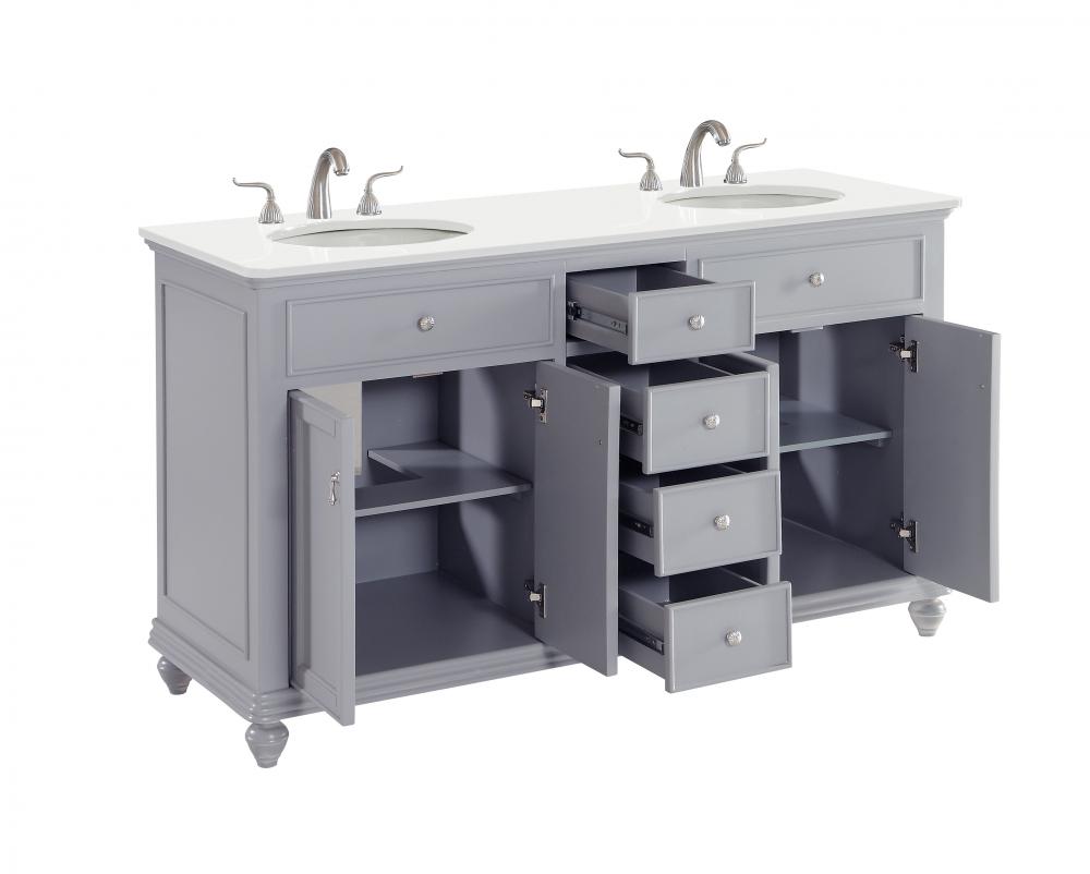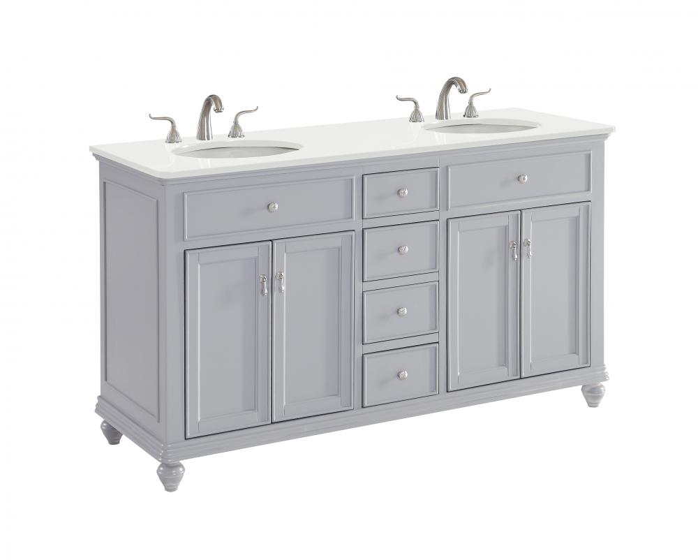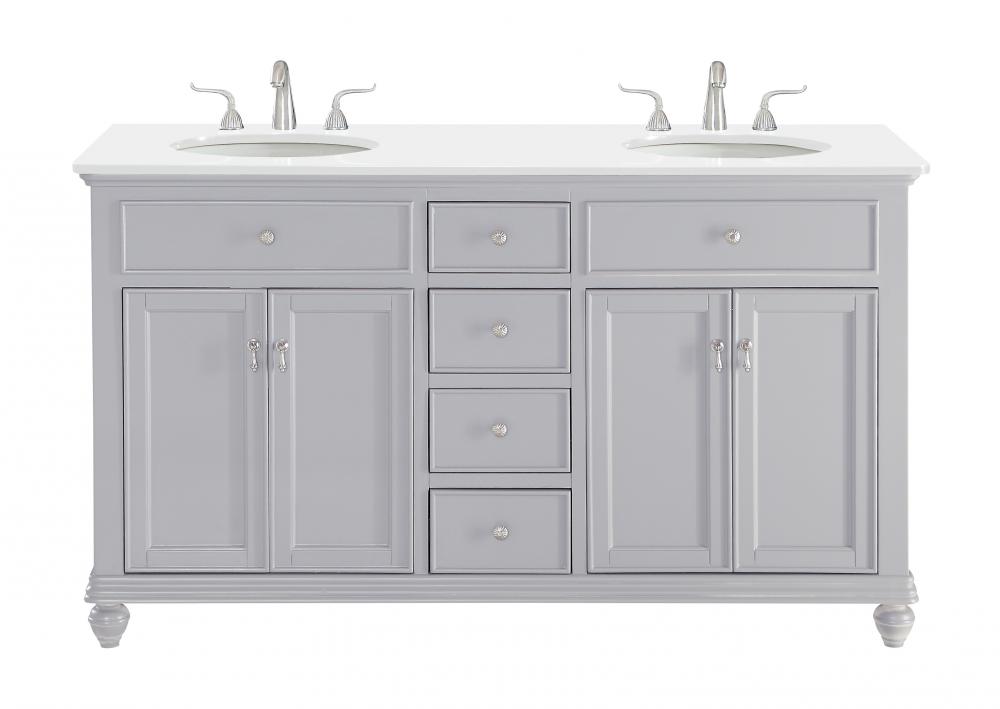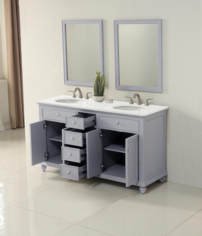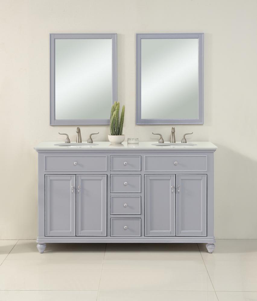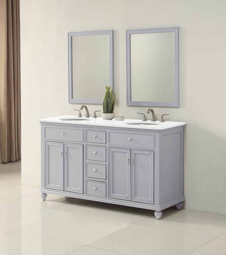 60 inch Double Bathroom vanity in Light Grey with ivory white engineered marble