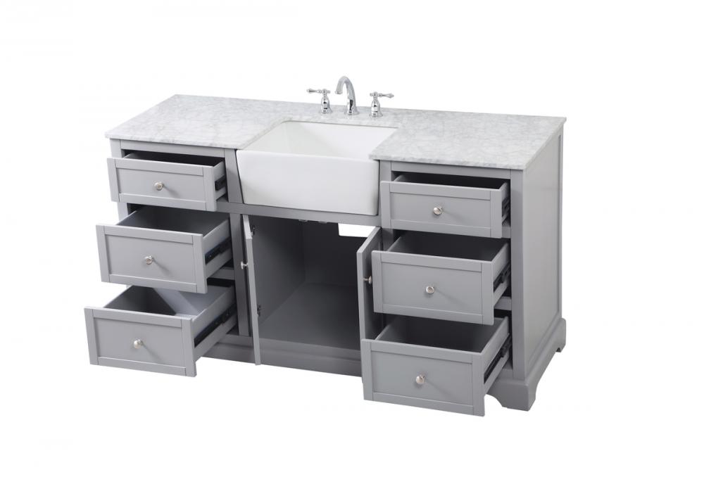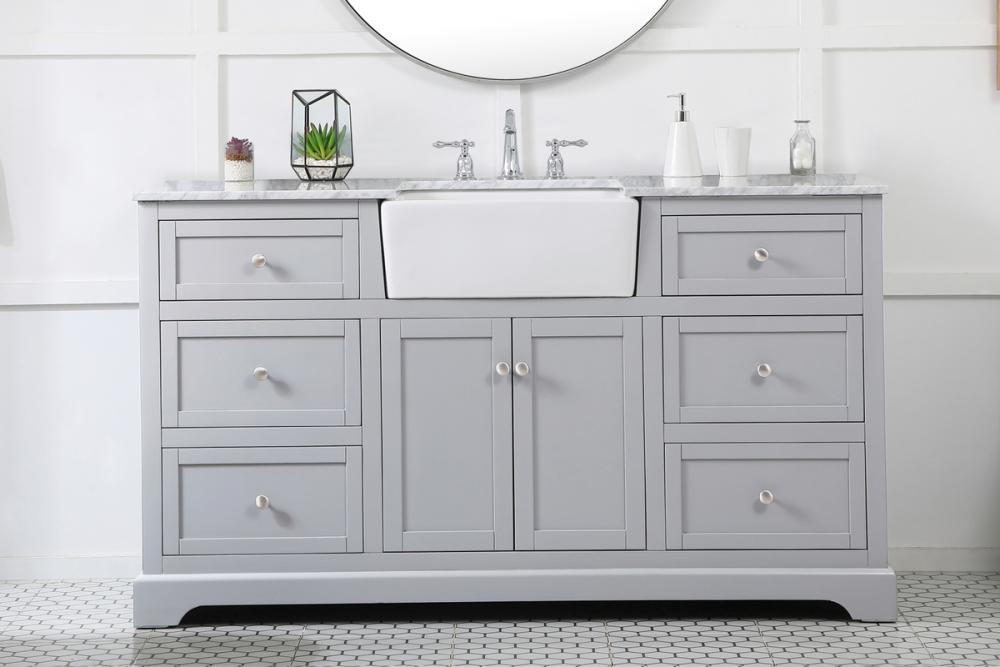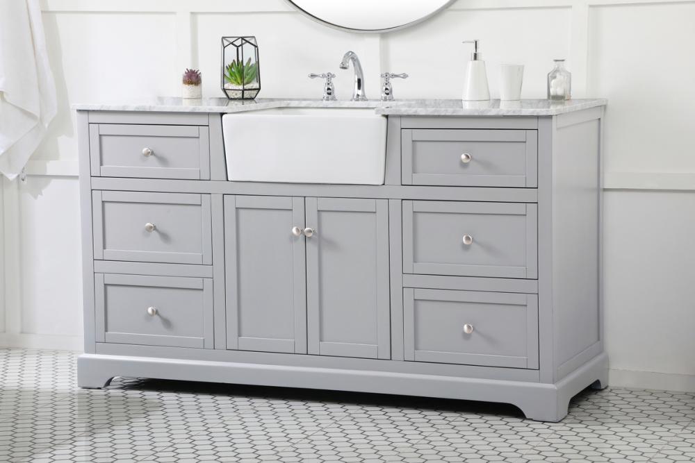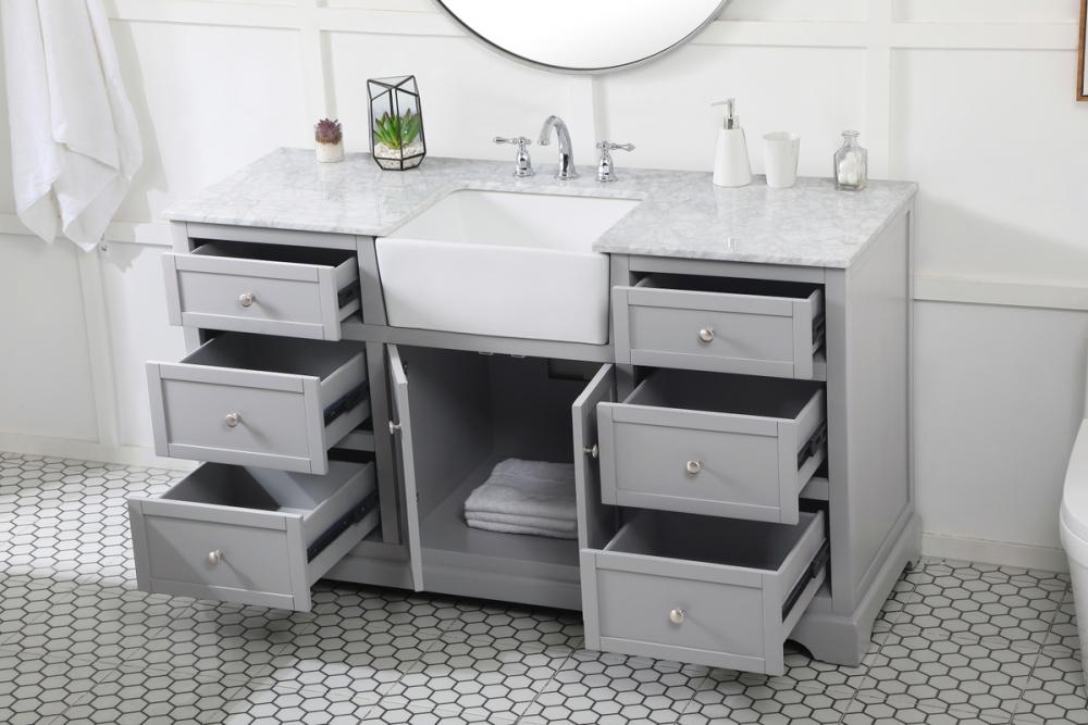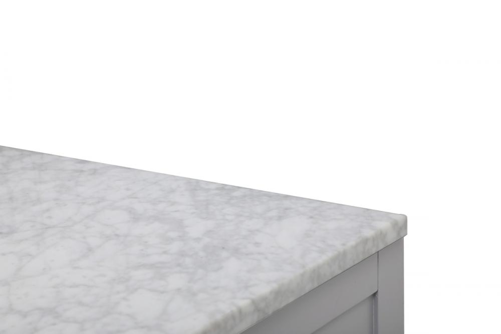 Make the most of your space with this farmhouse style bathroom vanity. Complements well with its beautiful finish, carrara white marble countertop, and the contemporary slender handle bar that sits on the functional drawers with soft closing mechanism, allowing you to store an assortment of bathroom essentials. The lower shelf makes it the perfect space to hold new towels for your guests. This stylish vanity ensures both form and function in your bathroom for you and your guests.
