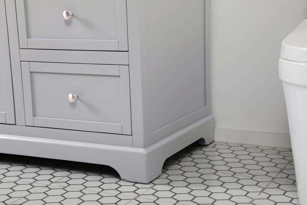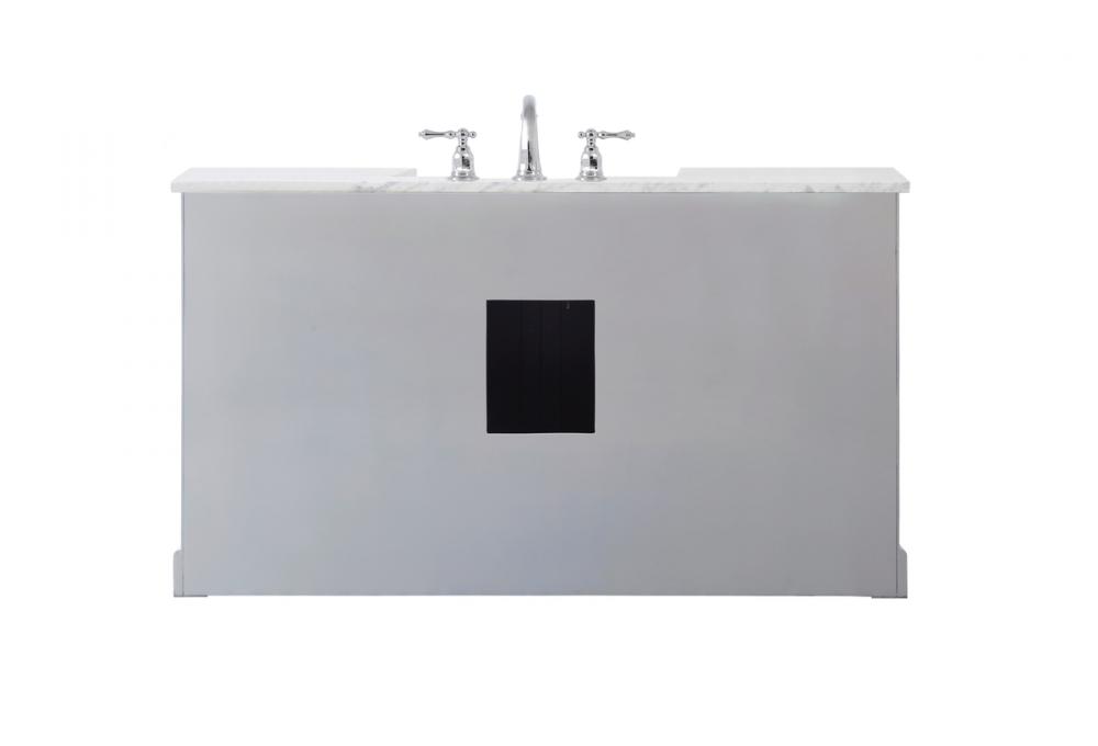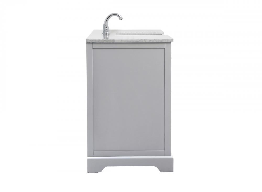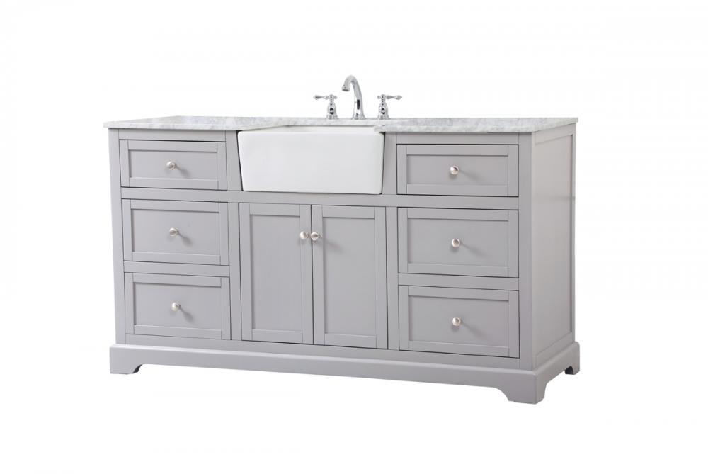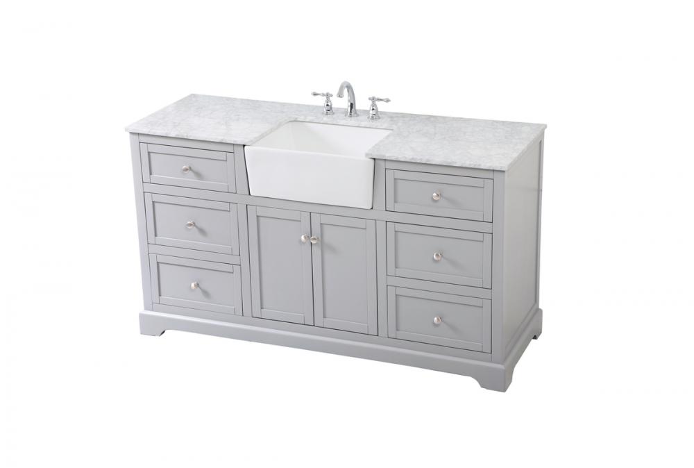 Make the most of your space with this farmhouse style bathroom vanity. Complements well with its beautiful finish, carrara white marble countertop, and the contemporary slender handle bar that sits on the functional drawers with soft closing mechanism, allowing you to store an assortment of bathroom essentials. The lower shelf makes it the perfect space to hold new towels for your guests. This stylish vanity ensures both form and function in your bathroom for you and your guests.