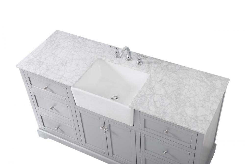 Comes with an apron porcelain sink and durable marble stone top in carrara white finish