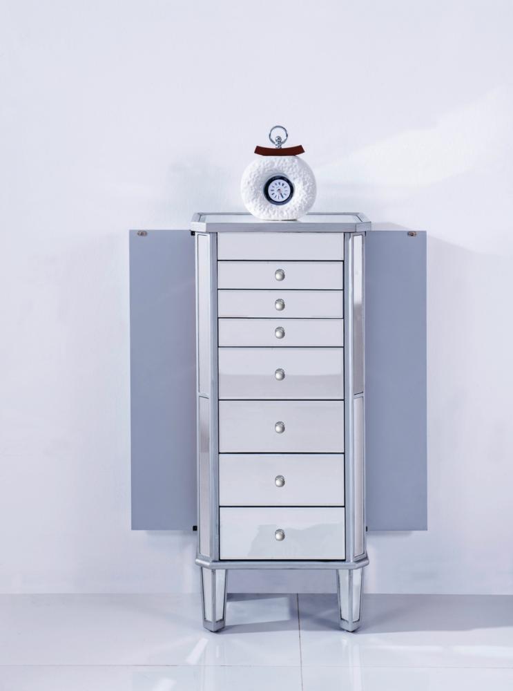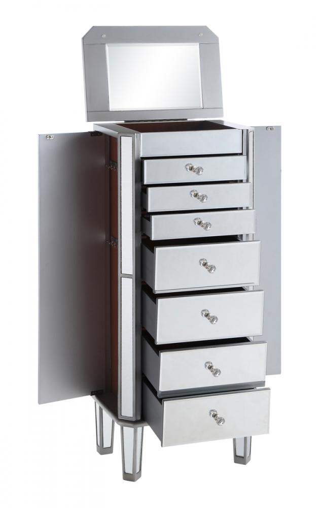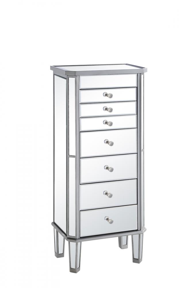 7 Drawer Jewelry Armoire 18 in. x 12 in. x 41 in. in silver Clear