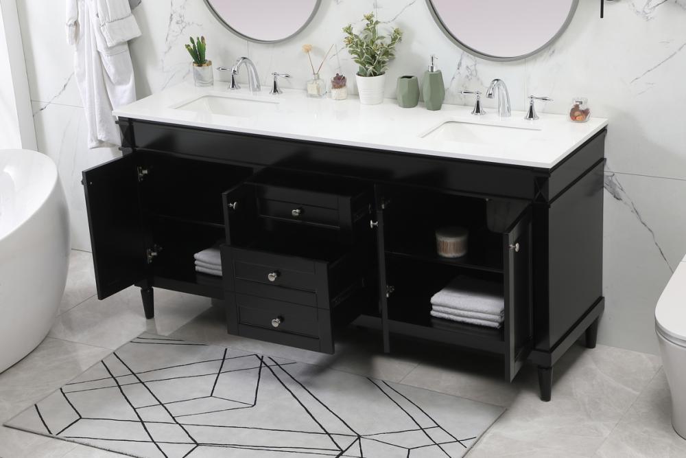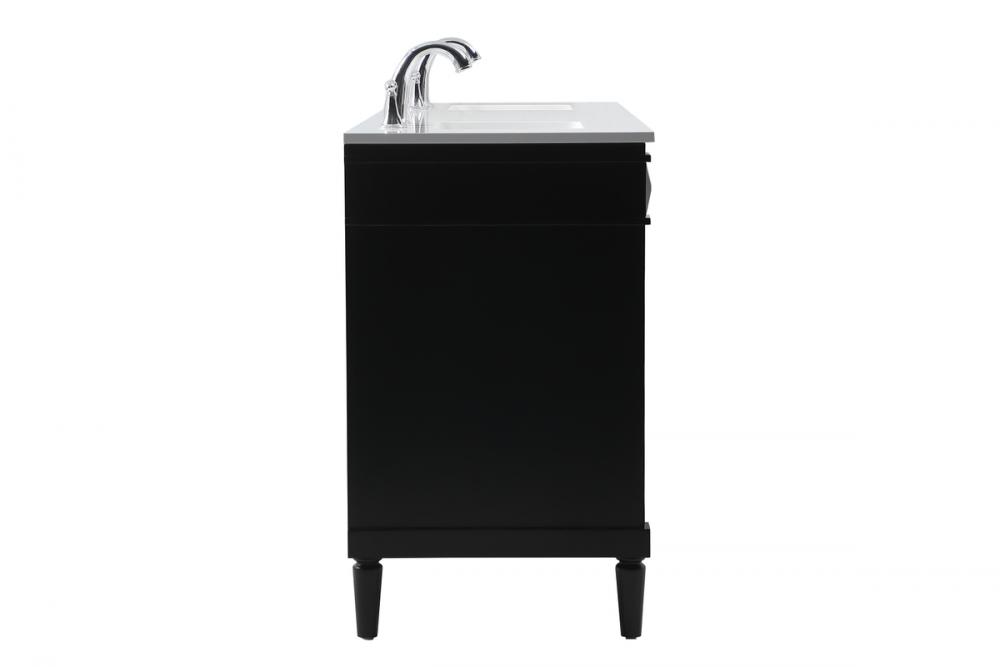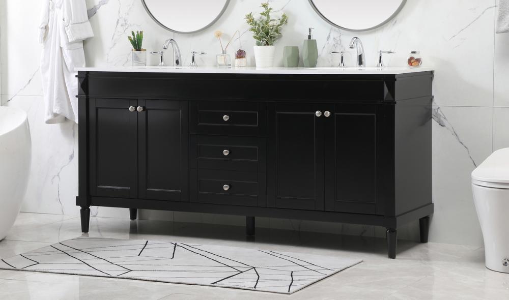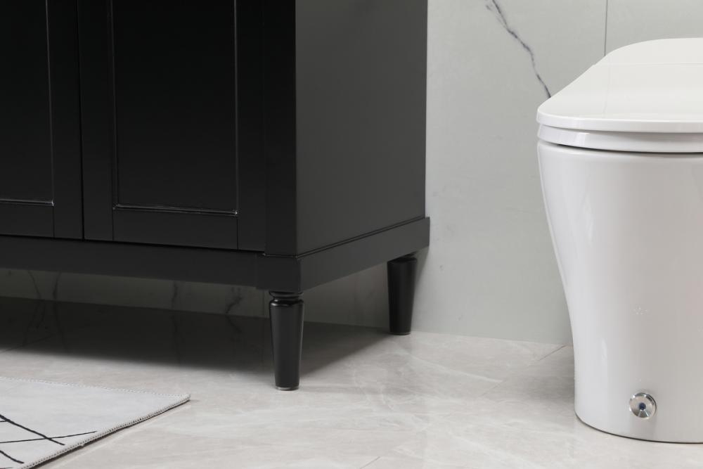 This transitional vanity is a beautiful piece of bathroom furniture will look amazing in your design scheme. The cabinet features a shaker style smooth door panel with simple round knobs and soft close hinges provide ample room for accessories. Packed with multiple side drawers with soft close glides for added comfort and full access to bath supplies. Convenient deep drawer stores all of your tall bath essentials. Constructed of engineered wood and solid wood legs with hand painted finish. The durable engineered marble countertop is a versatile material in an ivory white finish. Minor assembly of the legs needed to get this vanity up and running.