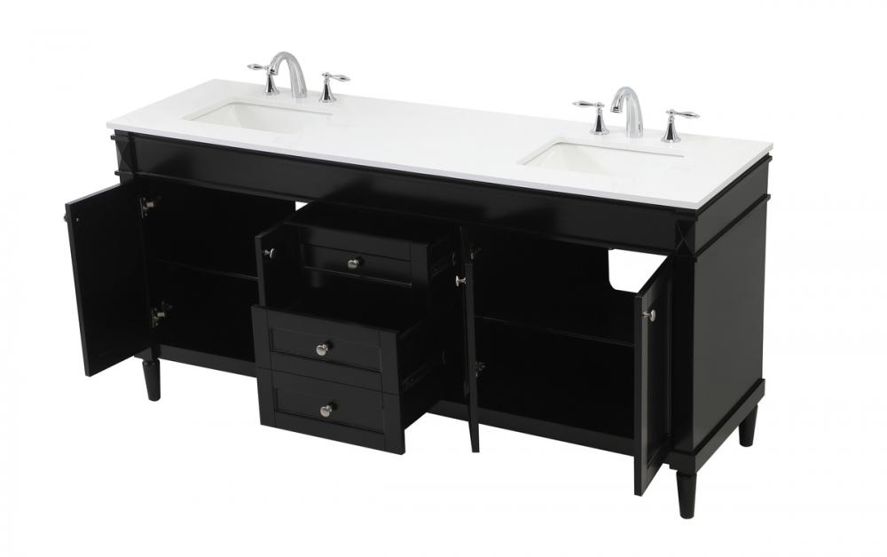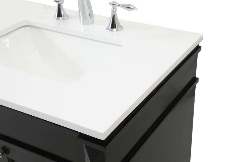 Crafted with durable engineered marble top in ivory white finish and vanity base is hand painted