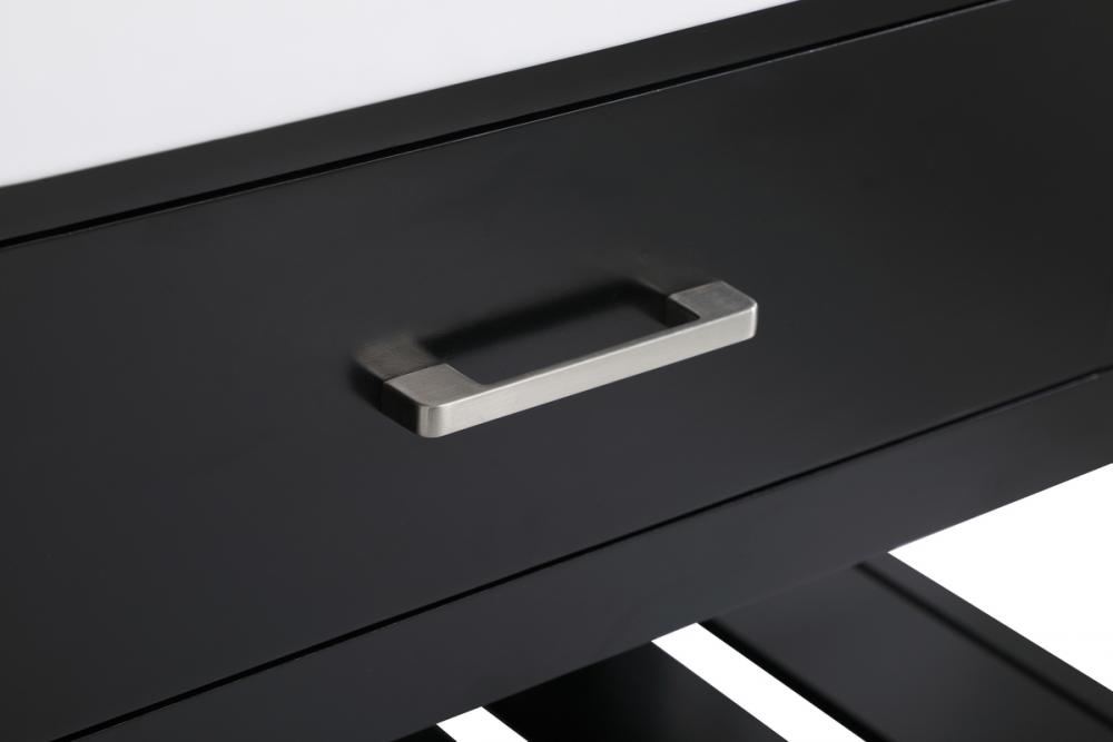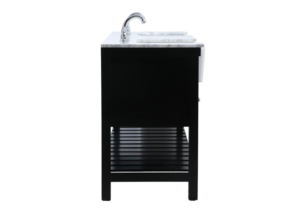Make the most of your space with this farmhouse style bathroom vanity. Complements well with its beautiful finish, carrara white marble countertop, and the contemporary slender handle bar that sits on the functional drawers with soft closing mechanism, allowing you to store an assortment of bathroom essentials. The lower shelf makes it the perfect space to hold new towels for your guests. This stylish vanity ensures both form and function in your bathroom for you and your guests.