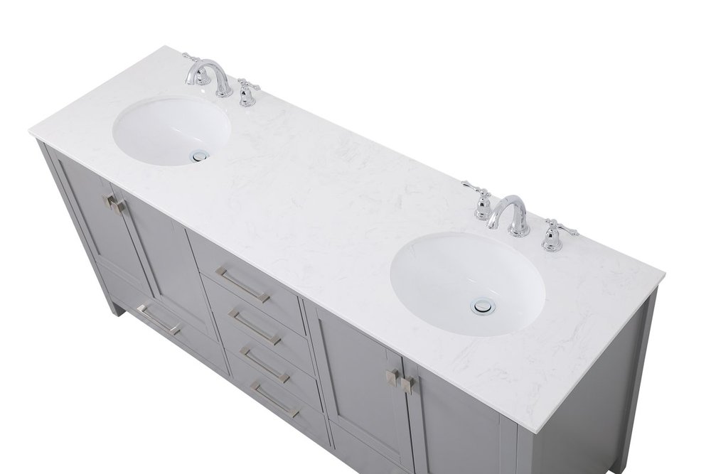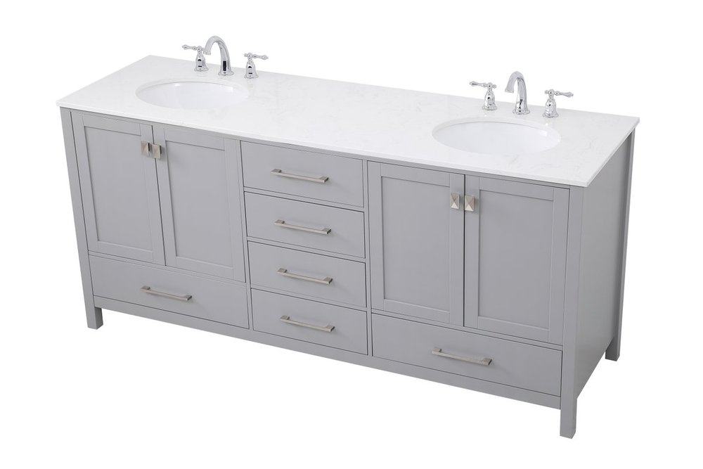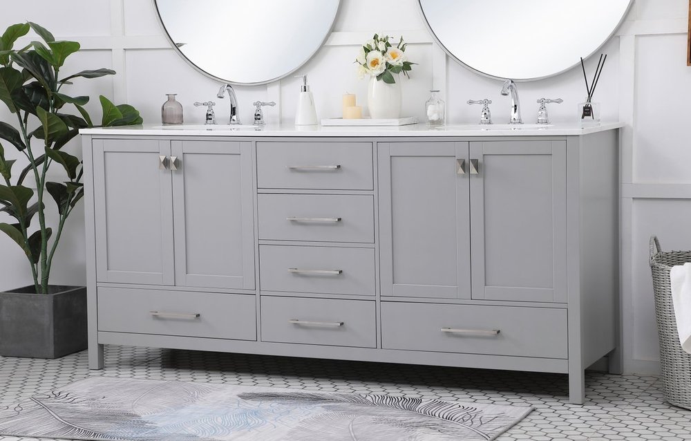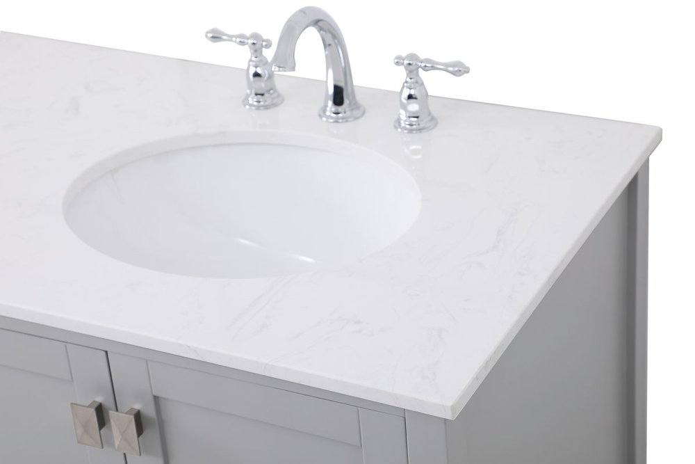 Never compromise beauty--the Irene collection stunning vanity in a gray finish will add lovely sophistication and complement any bathroom or powder room, while utilizing its charm and function to provide you with ample storage spaces. Brushed nickel pulls gently adorn the minimalist cabinet doors and drawers at the base, allowing for you to store away your bathroom essentials. The calacatta engineered marble countertop, porcelain undermount sink, dignified subtle engravings on the side edges, and squared legs all come together to create contemporary beauty. Work with your space, and design a beautiful room, no matter the size.