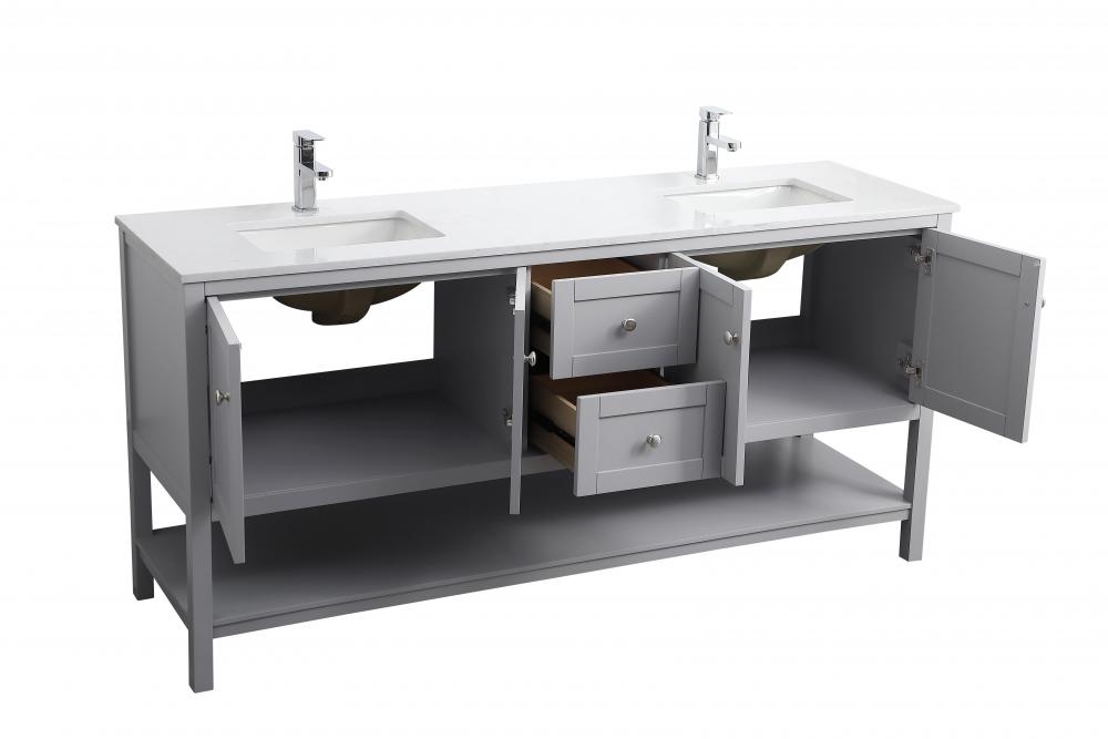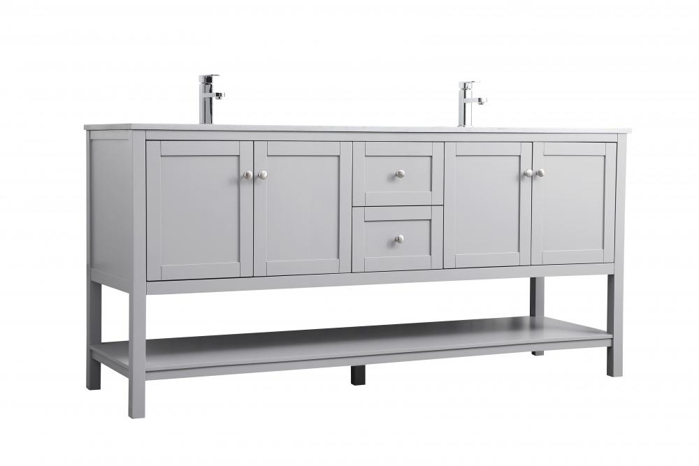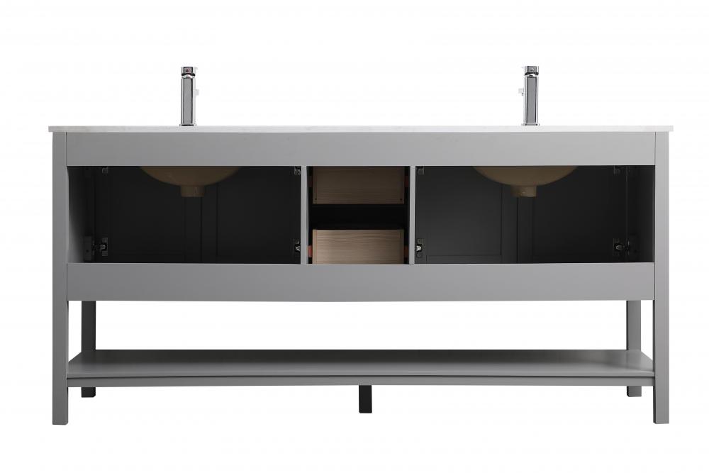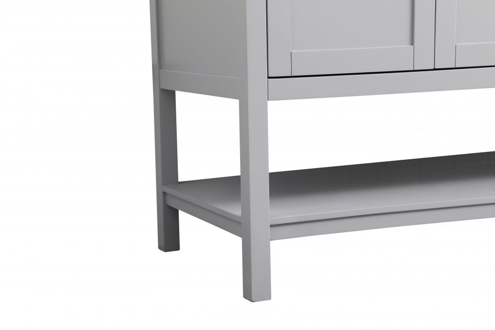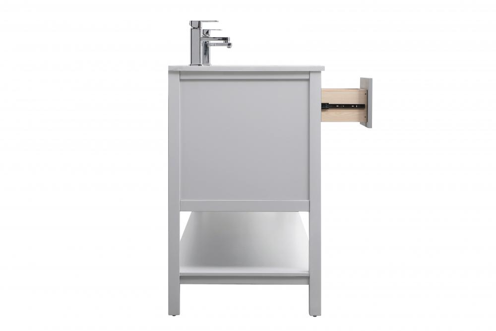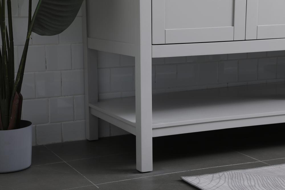 Boasting a lower open shelf for additional storage, this vanity offers a practical area to display decor or stow away essentials, seamlessly blending functionality with a touch of style for your bathroom.