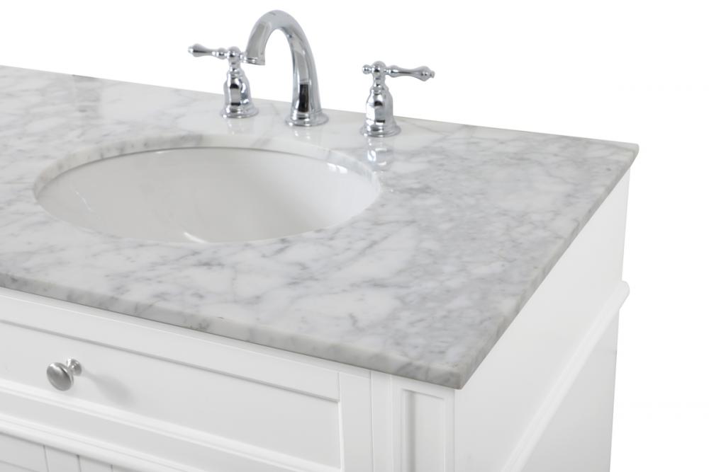 Comes with an undermount porcelain sink and a carrara white marble countertop