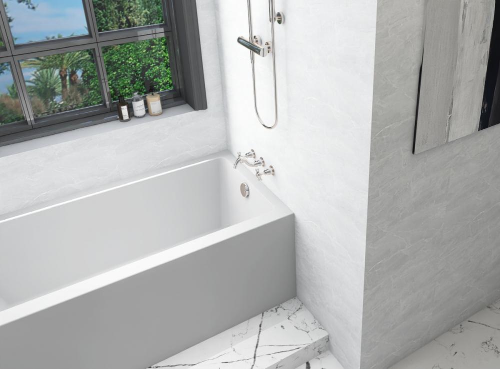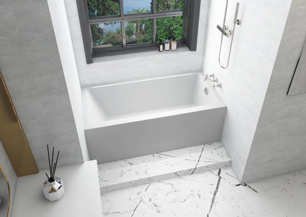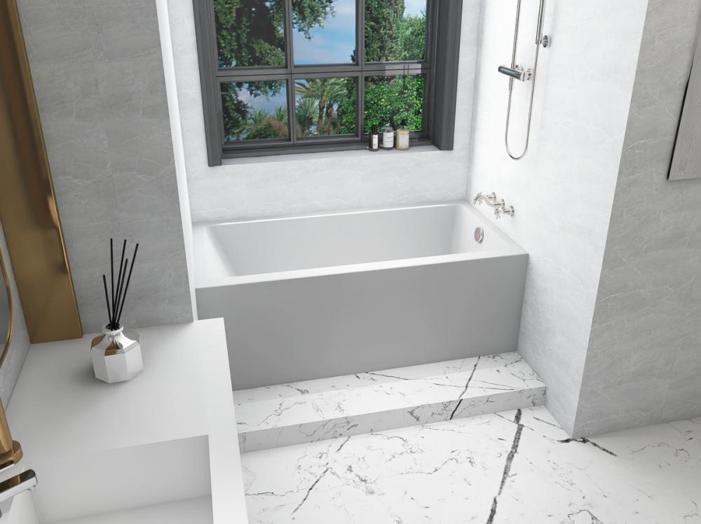Immerse yourself in the pinnacle of modern bathing luxury with our alcove-style bathtub. Crafted with precision from a blend of top-tier acrylic, resin, and fiberglass, the bathtub is the epitome of style and functionality. Choose between a left or right drain configuration to suit your bathroom layout, ensuring a perfect fit for your space.