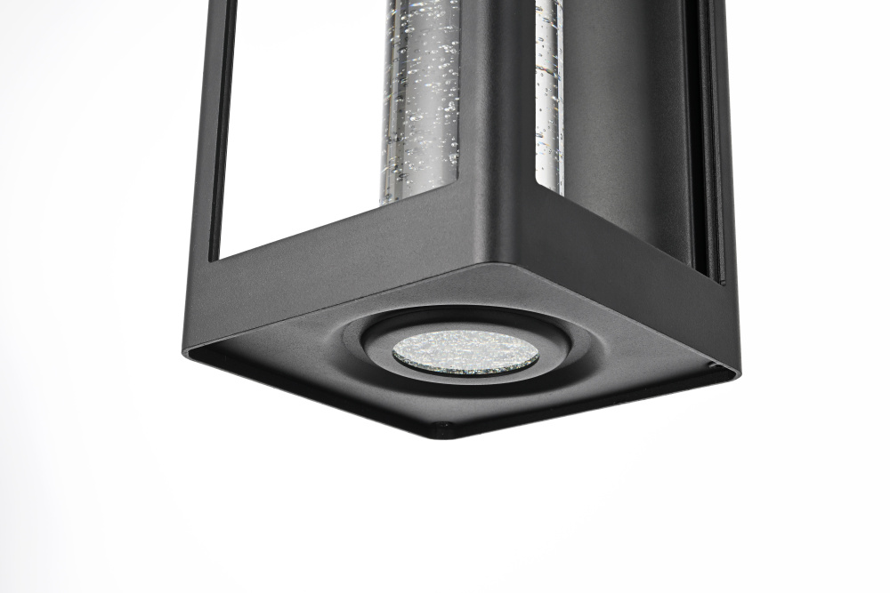 Designed with a strong geometric frame, this LED wall sconce adds structure and definition to outdoor spaces. The rectangular black metal body encloses a thick 2.5-inch clear seedy glass cylinder, which enhances the light diffusion while maintaining a crisp, modern glow. Built for durability, the iron and aluminum frame ensures long-term performance, while the ETL Wet Rated certification makes it a reliable choice for entryways, patios, and exterior walls. The compact 5”L x 1”W x 5”H backplate allows for a secure and streamlined mount, and the 7-inch pre-wired lead simplifies installation. Featuring an integrated 11W LED, this fixture emits a warm 3000K light at 300 lumens, with a 120-degree beam angle and 90 CRI for balanced illumination. Dimmable and hardwired for stability, this sconce combines precision and functionality for contemporary exteriors. Available in multiple sizes from 10” to 32”, this fixture provides flexibility for different architectural styles and placements. Built with marine-grade, corrosion-resistant aluminum, this sconce withstands coastal conditions for long-lasting durability.