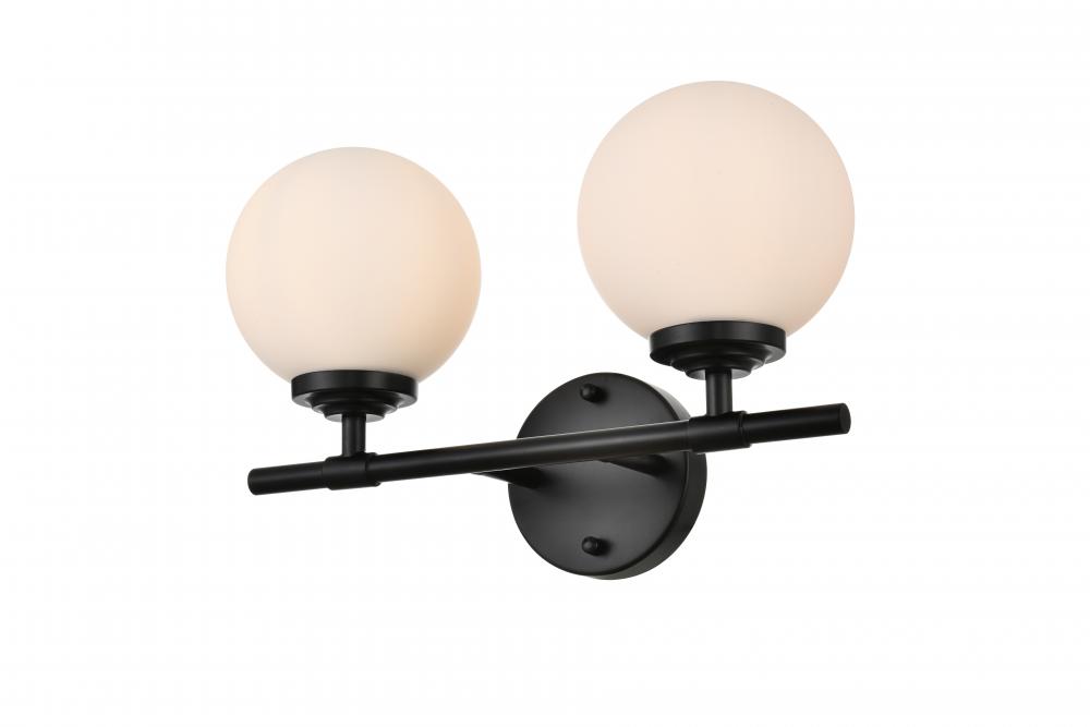 Ansley 2 light Black and frosted white Bath Sconce