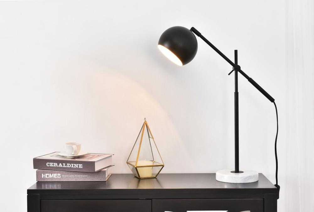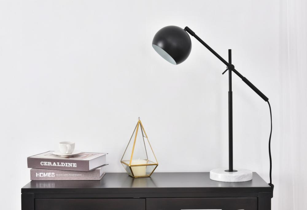 The Aperture collection table lamp in a black finish is sleek and chic. The stunning marble base, slender rod body, and circular lamp shade will surely add a luxurious and clean minimalism to any room. As the light shines through, highlighting the clean white finish interior, you'll surely be able to brighten up any room, whether you're entertaining guests in the living room, studying in your office, or reading in bed.