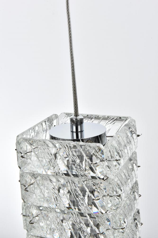Elevate the ambiance of your space with this exquisite Crystal LED Pendant Light. Featuring a sleek four-sided rectangular shape, this pendant is adorned with clear crystals that resemble elegantly stacked ice. The addition of a round crystal diffuser at the bottom enhances the light's radiance, making it a focal point in any room. Transform your home with the Crystal LED Pendant Light, combining modern design with high functionality. Its sophisticated crystal design, adjustable lighting, and customizable hanging configurations make it a perfect addition to any contemporary space. Illuminate your home with style and elegance today.