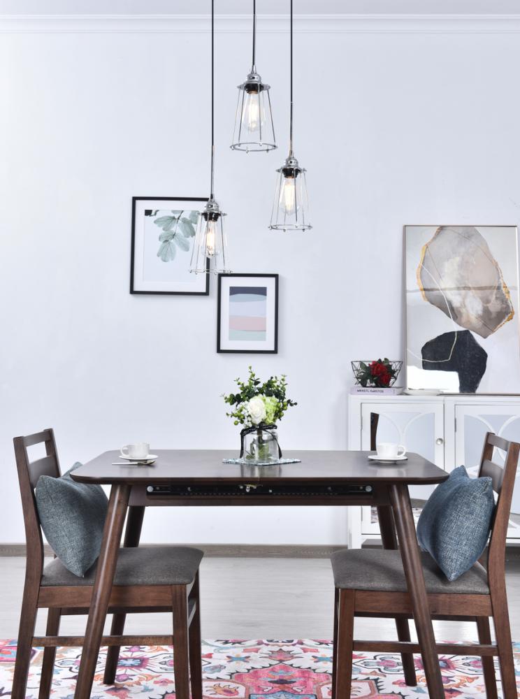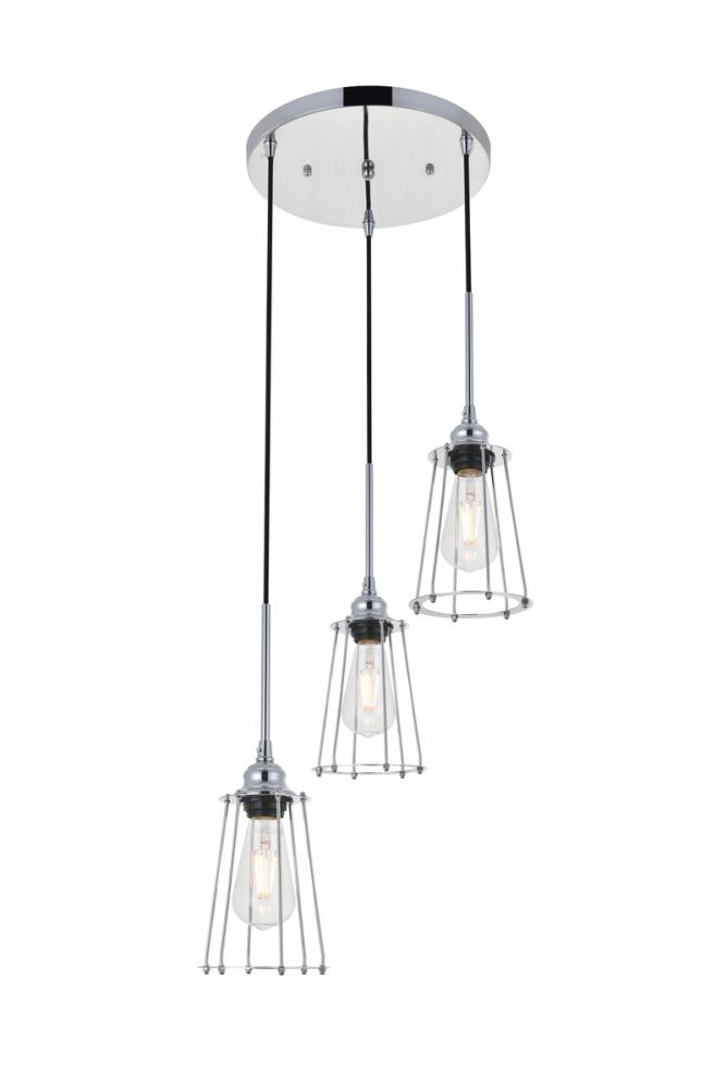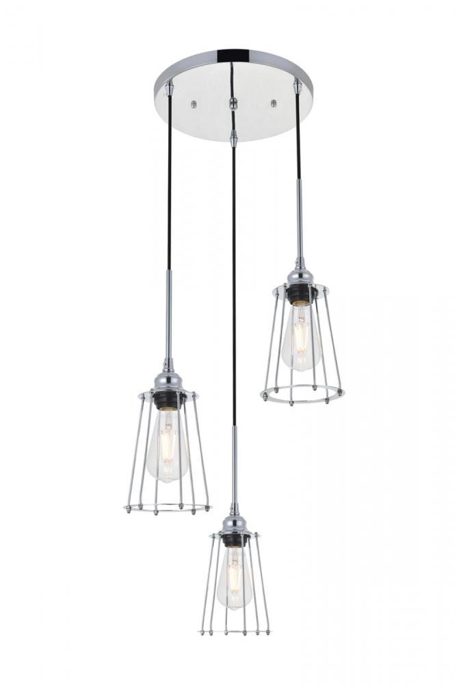 In all of its auspicious glory, the Auspice collection pendant lamp in a chrome finish will shine its felicitous light for you. As the lights pass through the open shades, they dance around with the shadows and put a spotlight in your room. Whether it is in your entryway, living room, or dining room, this grouping of 3-light pendant will surely please you and your guests.