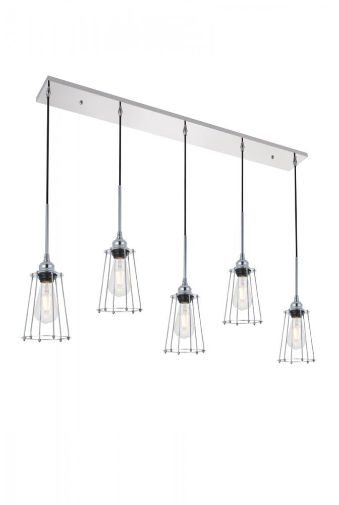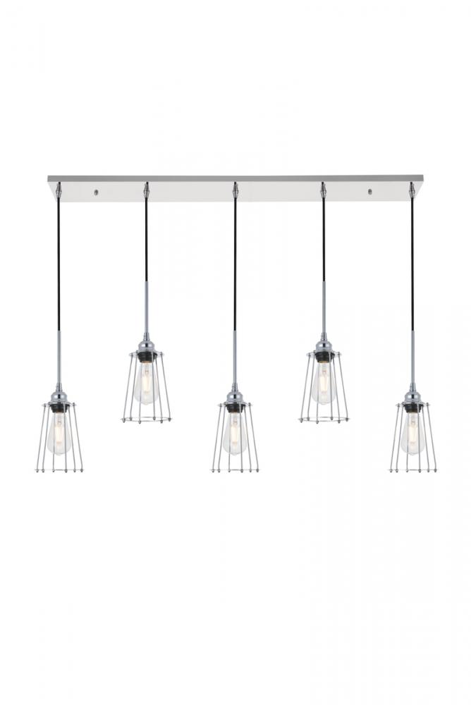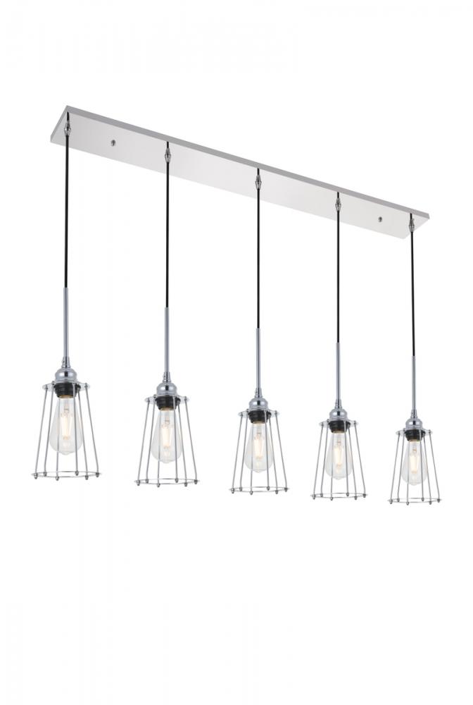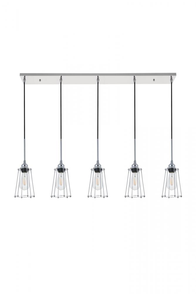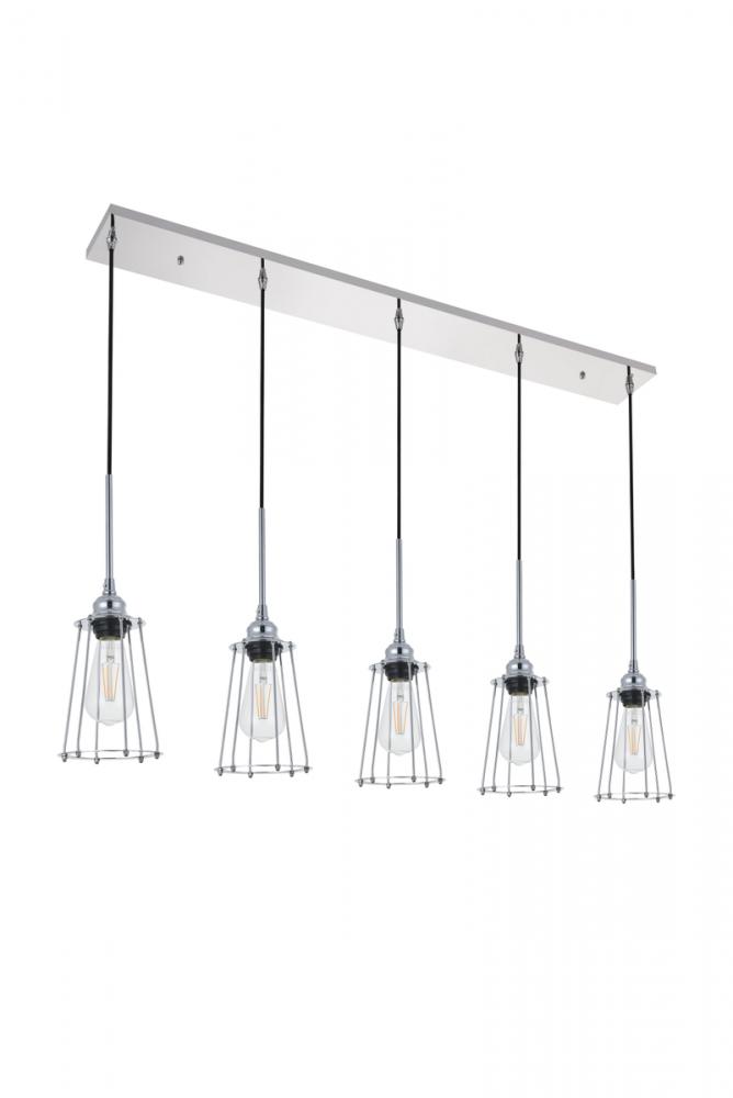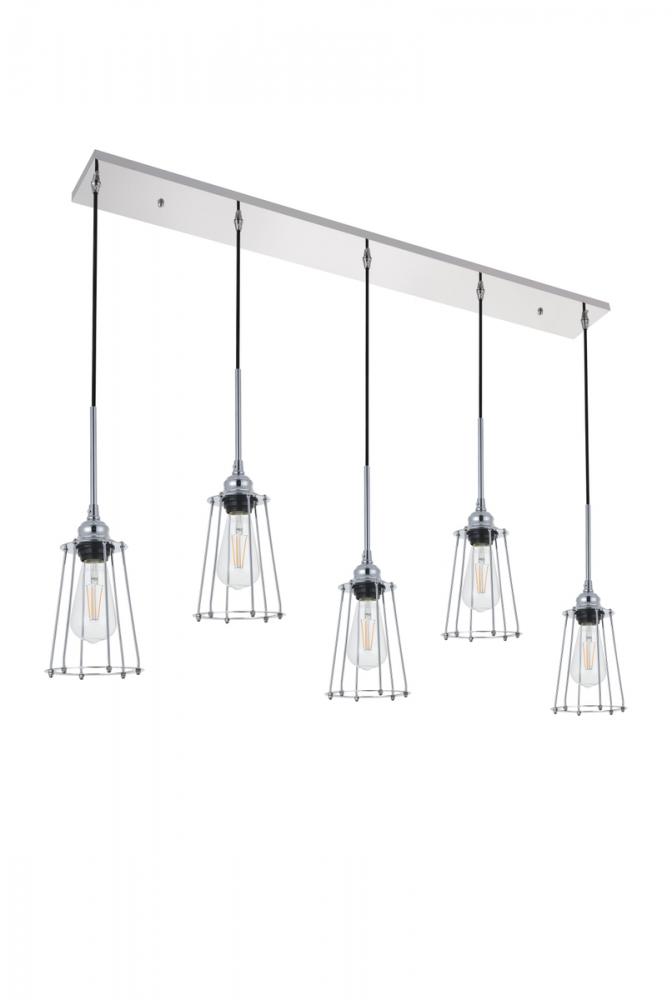 In all of its auspicious glory, the Auspice collection pendant lamp in a chrome finish will shine its felicitous light for you. As the lights pass through the open shades, they dance around with the shadows and put a spotlight in your room. Whether it is in your entryway, living room, or dining room, this row of 5-light pendant will surely please you and your guests.