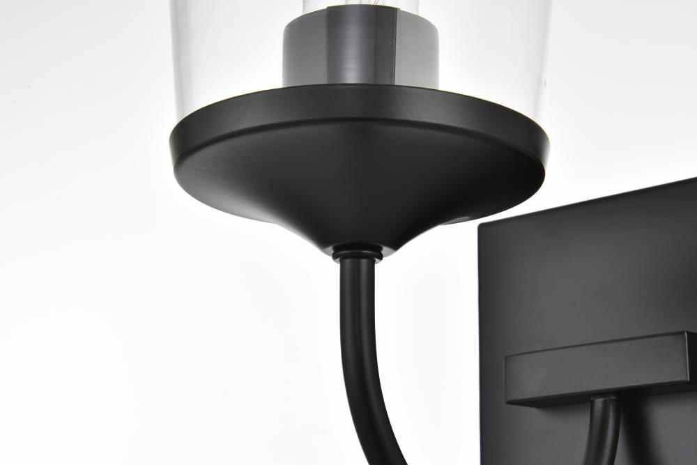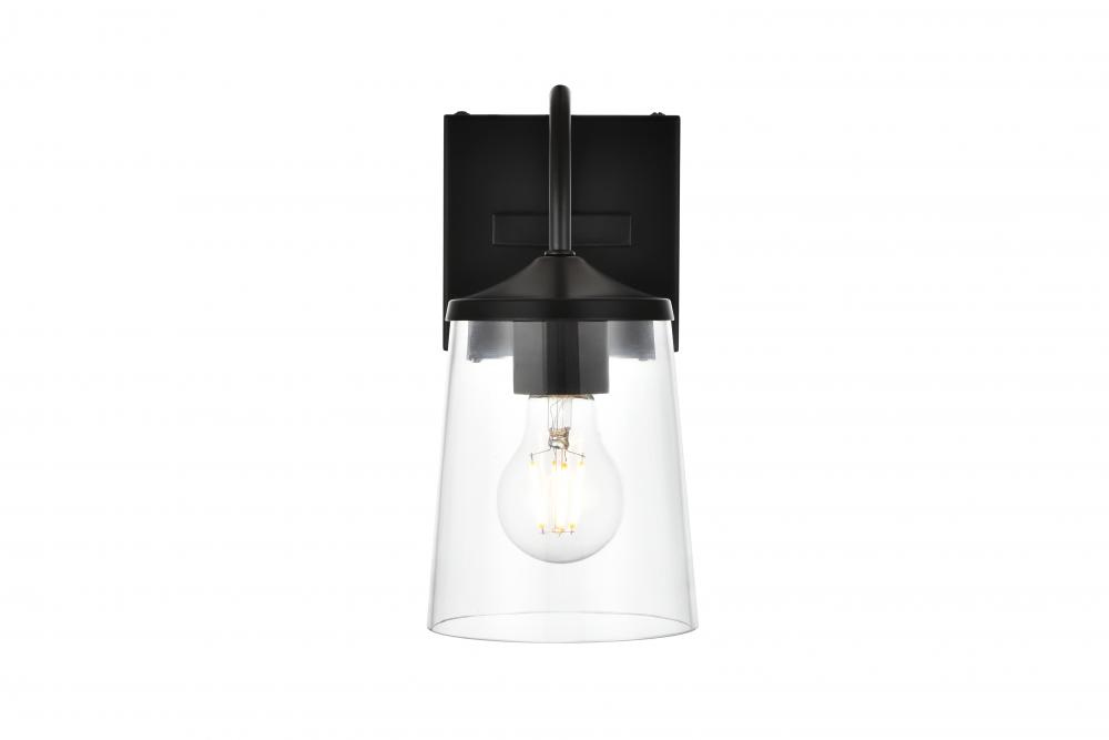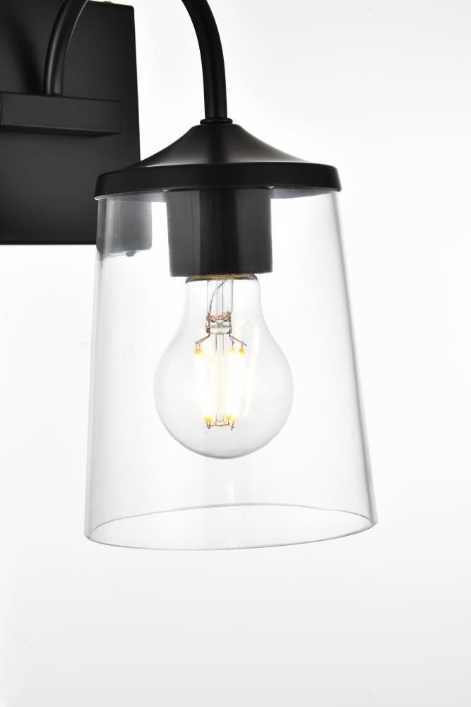 Defined by curved metal arm extends to suspend the clear bell glass shade. A contemporary stunner, it shows off the straight line details from the backplate and the streamline thin metal arm. Compatible with dimmers, so you'll have the right amount of light in any given time of the day. Completely versatile, you can place this wall light as an uplight or downlight. Rated for use in damp locations, this will work perfectly over a vanity in your bathroom.