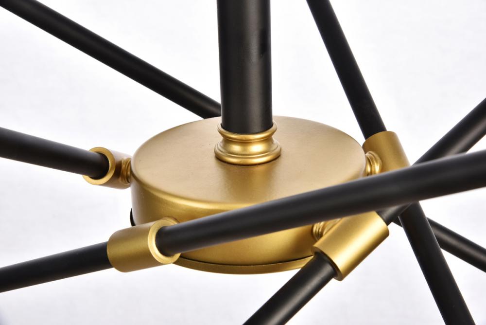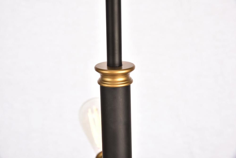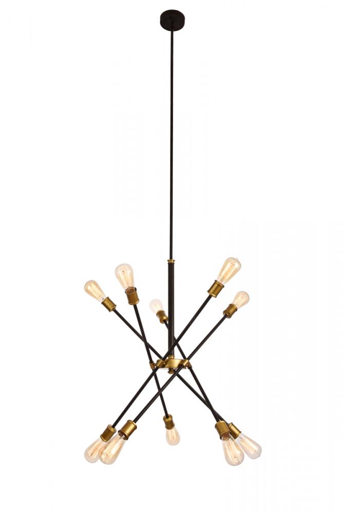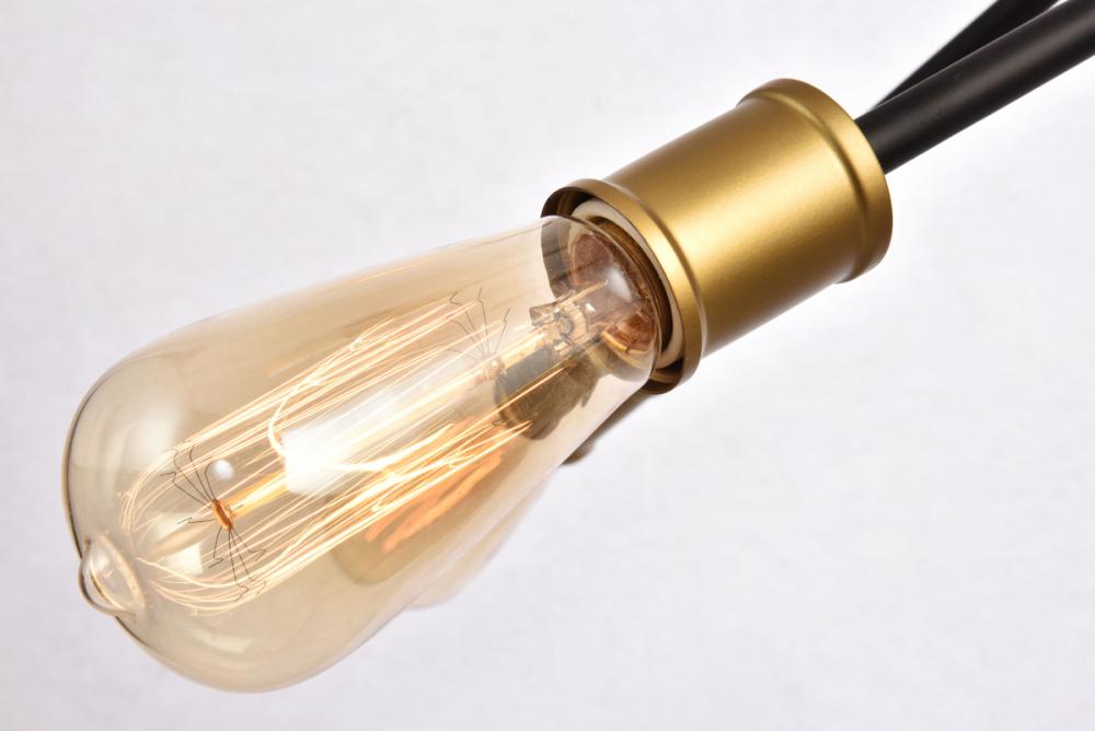 A postmodern design masquerading as a more traditional hanging fixture, the Axel collection is a study in diversity. Curiously placed arms each end with socket that orbits around a central circular frame. The classic Black and brass finish contrasts with the joyful eccentricity of the configuration to create a surprisingly unified whole that hangs playfully in a stairwell, living room, or dining room.