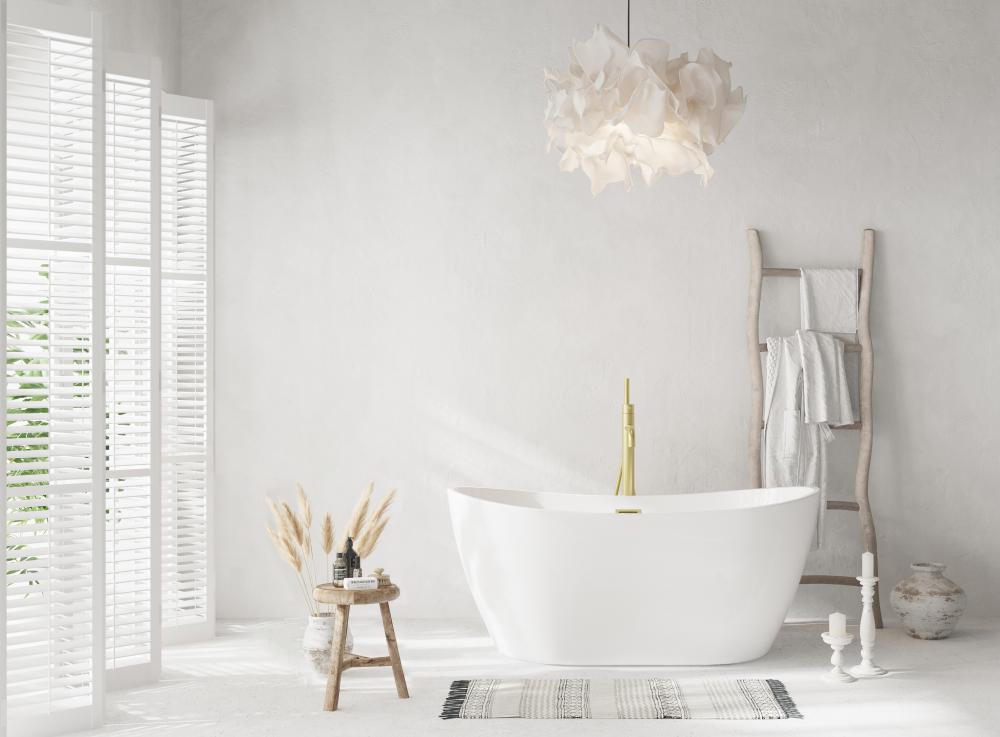 Indulge in the luxury of a spa-like experience right in your home with this stunning freestanding bathtub. Crafted from premium-quality acrylic, it is built to withstand daily use while maintaining its beautiful glossy finish. The stain and scratch-resistant surface ensures easy maintenance, keeping it bright and clean for years. The bathtub features gently sloped curves that hug your body, providing a deep and soothing soak. with a variety of metal trims to choose from, you can easily coordinate your tub with your faucet and bathroom fixtures. Easy to install and versatile in placement, this freestanding bathtub is the perfect centerpiece for any modern bathroom.