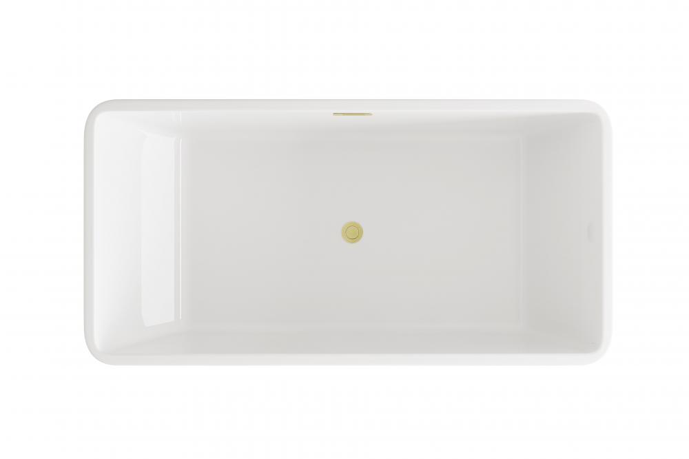 Immerse yourself in the ultimate relaxation experience with this elegant freestanding soaking bathtub. for a modern, minimalist aesthetic, the rectangular freestanding bathtub is the perfect choice. Its sharp, clean lines and structured form bring a contemporary edge to any bathroom. The smooth, rounded rim offers comfortable arm support, making it the ideal spot to unwind. Equipped with a pop-up drain and integrated overflow, this tub seamlessly combines convenience and style. with a generous capacity and 15-inch soaking depth, it's perfect for those looking to indulge in a deep, luxurious soak. Available with customizable drain trim finishes like brushed gold, matte black, and more, this bathtub is designed to fit your unique style. Durable and easy to install with adjustable foot levelers, this tub is both a statement piece and a functional retreat in your home.