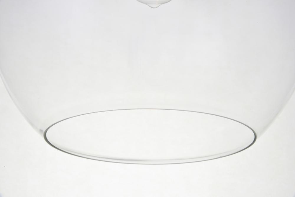 Feature 2: spherical clear glass shade with open center for easy bulb replacement