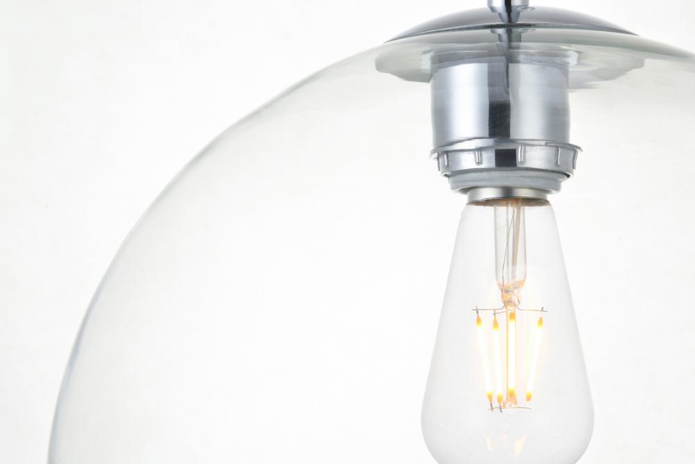 Refined style with a practical design, Baxter hanging pendant lamps bring cosmopolitan sophistication anywhere, especially to an entryway, office, bathroom, bedroom, or kitchen. The smooth iron frame features a disk-shaped canopy and comes in a chrome finish. An adjustable black cord allows you to vary the hanging height from 27 to 72 inches. The clear spherical glass shade remains open at the center to allow for effortless replacement of the filament-style bulb (not included). Living in the big city has never been this easy.