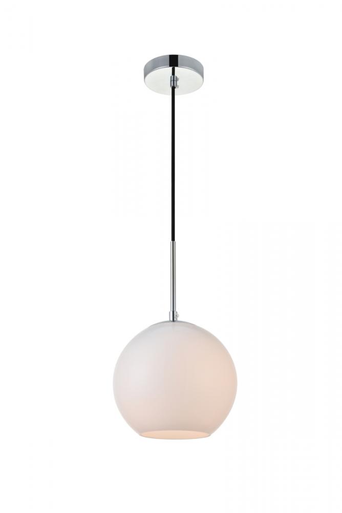 Refined style with a practical design, Baxter hanging pendant lamps bring cosmopolitan sophistication anywhere, especially to an entryway, office, bathroom, bedroom, or kitchen. The smooth iron frame features a disk-shaped canopy and comes in a chrome finish. An adjustable black cord allows you to vary the hanging height from 14 to 68 inches. The frosted white spherical glass shade remains open at the center to allow for effortless replacement of the filament-style bulb (not included). Living in the big city has never been this easy.